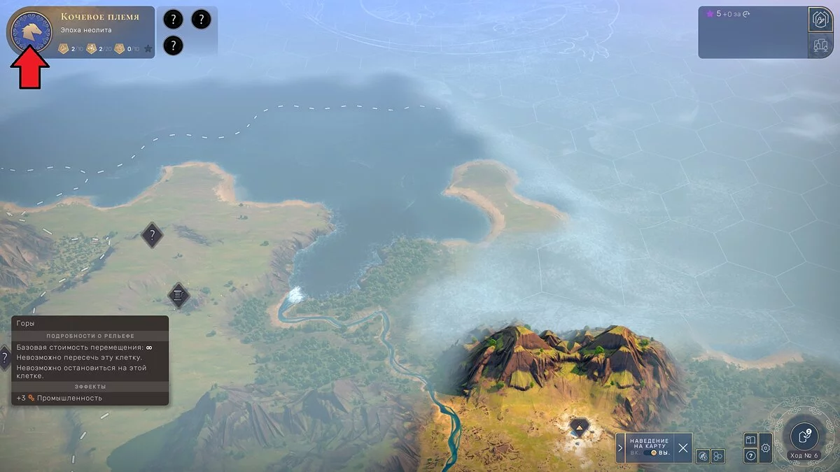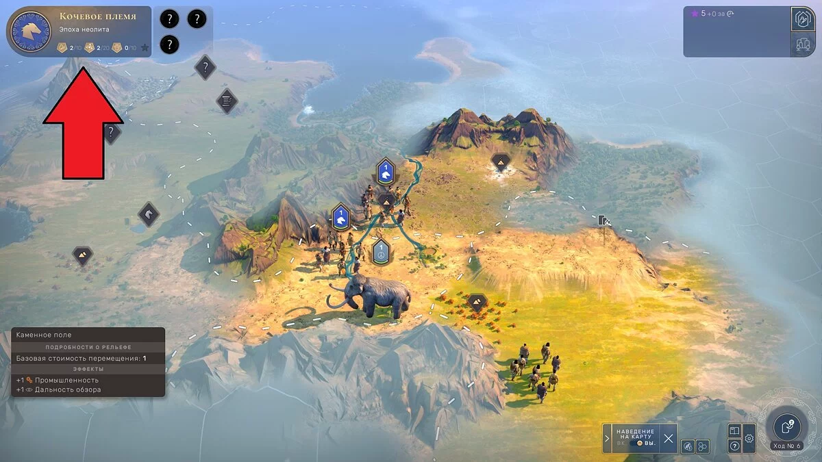 Проще всего получить звезду, охотясь на животных или собирая объекты интереса. Для охоты советуем набрать еды на найм второго отряда, иначе могут возникнуть проблемы с мамонтами. Для получения «звезды знания» просто собирайте объекты интереса, разбросанные по всему миру. И чем больше отрядов исследуют окрестности, тем быстрее вы накопите на одну звезду эпохи. И выполнив это действие, нажмите на следующий значок: