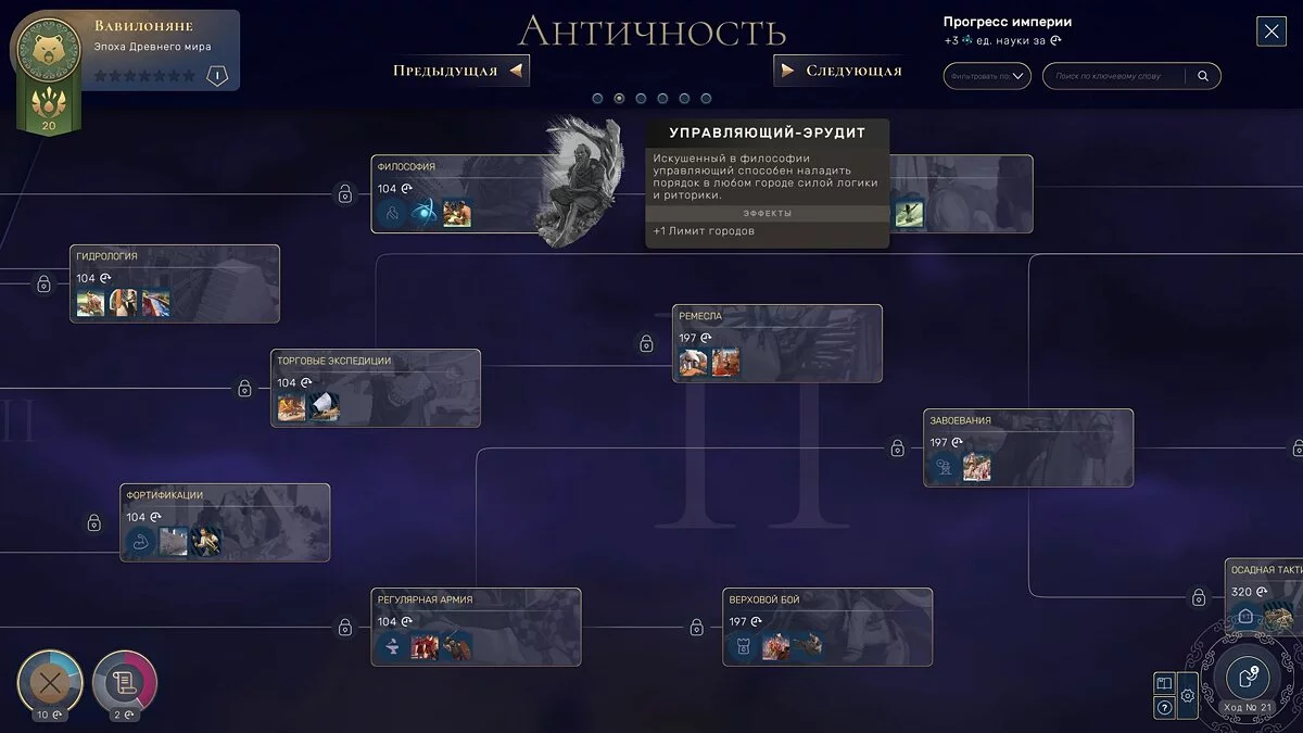 Все, что вам нужно для увеличения максимального количества городов в Humankind — это изучать новые технологии. В противном случае вы рискуете получить штрафы к влиянию за каждый город, превышающий лимит города вашей империи.