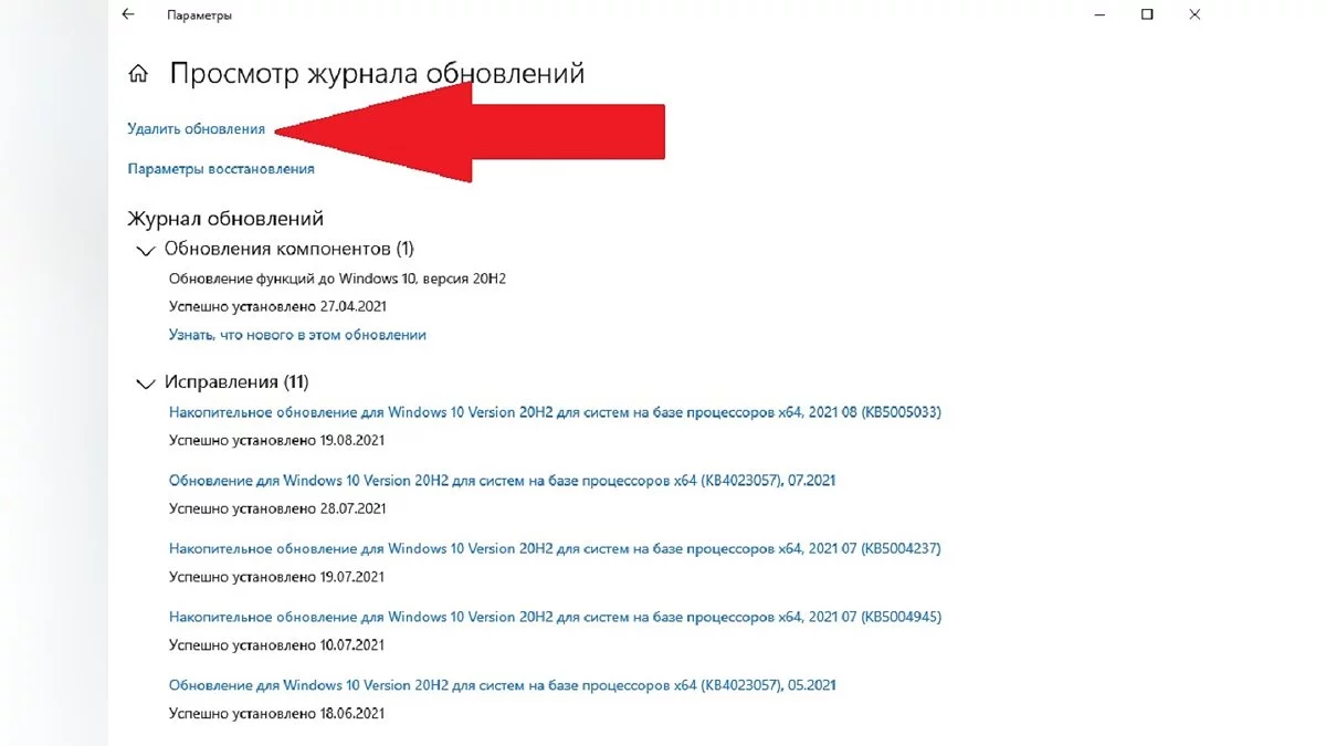 - В разделе «Исправления» найдите пункт «Удалить обновления» и нажмите на него.