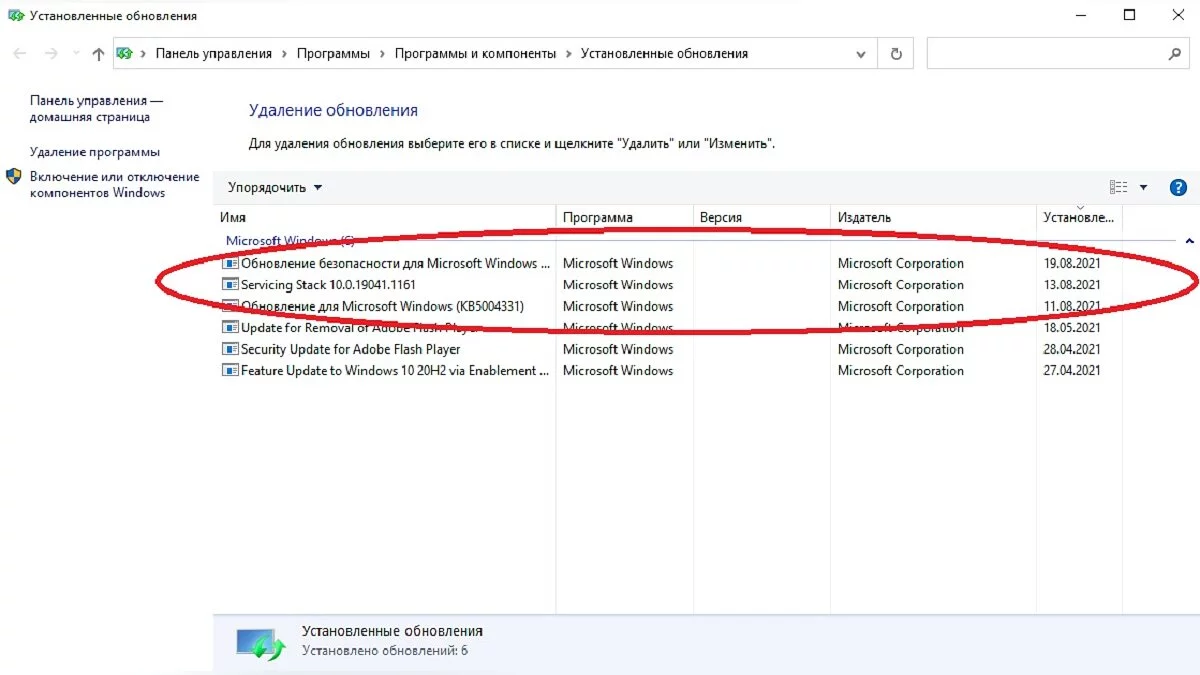 - Найдите августовские обновления и удалите их.