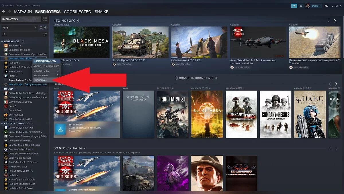 - Щёлкните по названию игры правой кнопкой мыши и выберите пункт «Свойства».