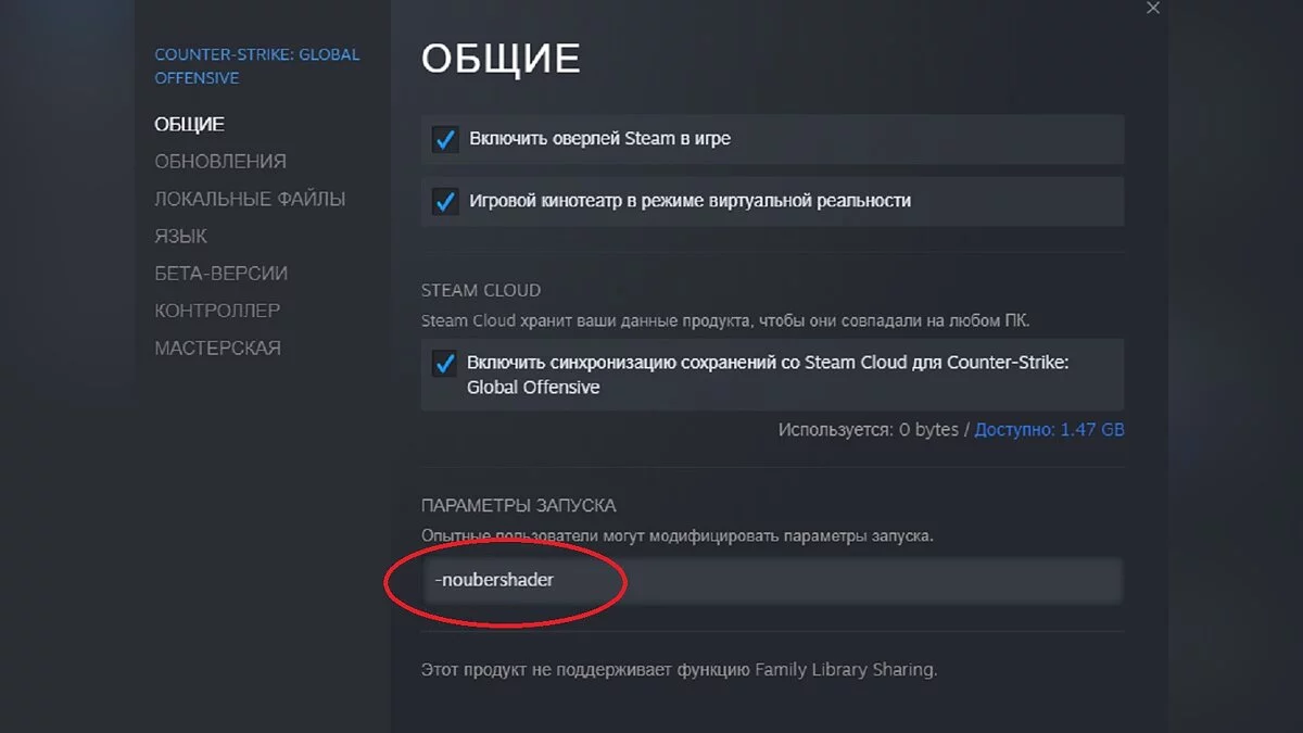 - В новом окне, под надписью «Параметры запуска», введите команду «-noubershader».