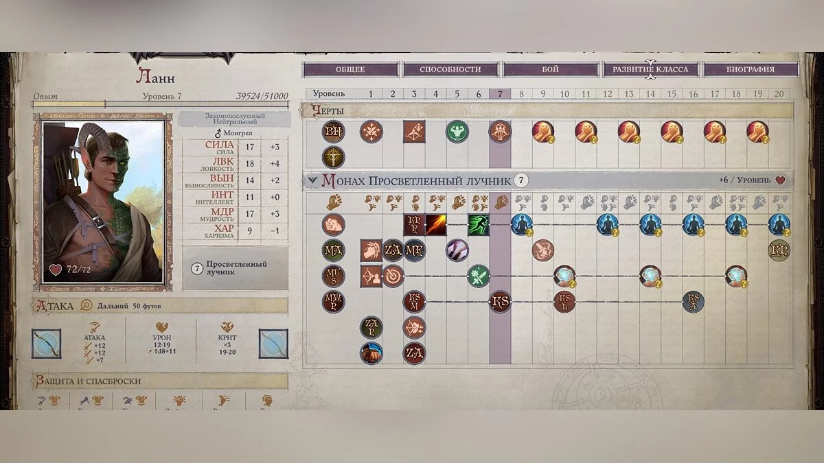 Монах (просветленный лучник), который способен наносить огромное количество урона, что позволяет весьма быстро разбираться с колдунами и стрелками. Также немного владеет магией. Из навыков полезен для проверки атлетики, подвижности и внимания. Найти Ланна вы сможете в пещерах под Кенабресом. Но стоит учитывать один сюжетный момент: