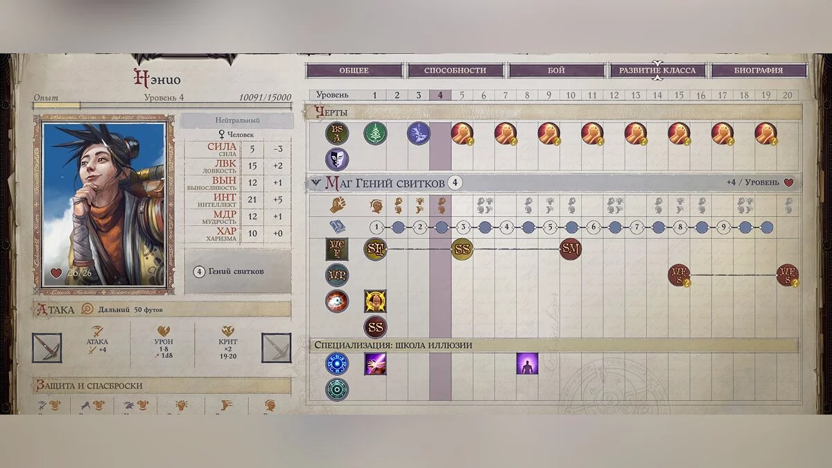 Девушка-маг, использующая внушительный арсенал магии, а благодаря высокому уровню интеллекта, еще и способна развивать множество навыков. Взять ее в отряд вы сможете в первой главе в случайном событии на карте мира. Лично мы нашли Нэнио, направляясь из рынка в таверну. Вы найдете волшебницу за экспериментом над культистами. И даже сорвав ее научную деятельность, вы сможете завербовать девушку в группу.