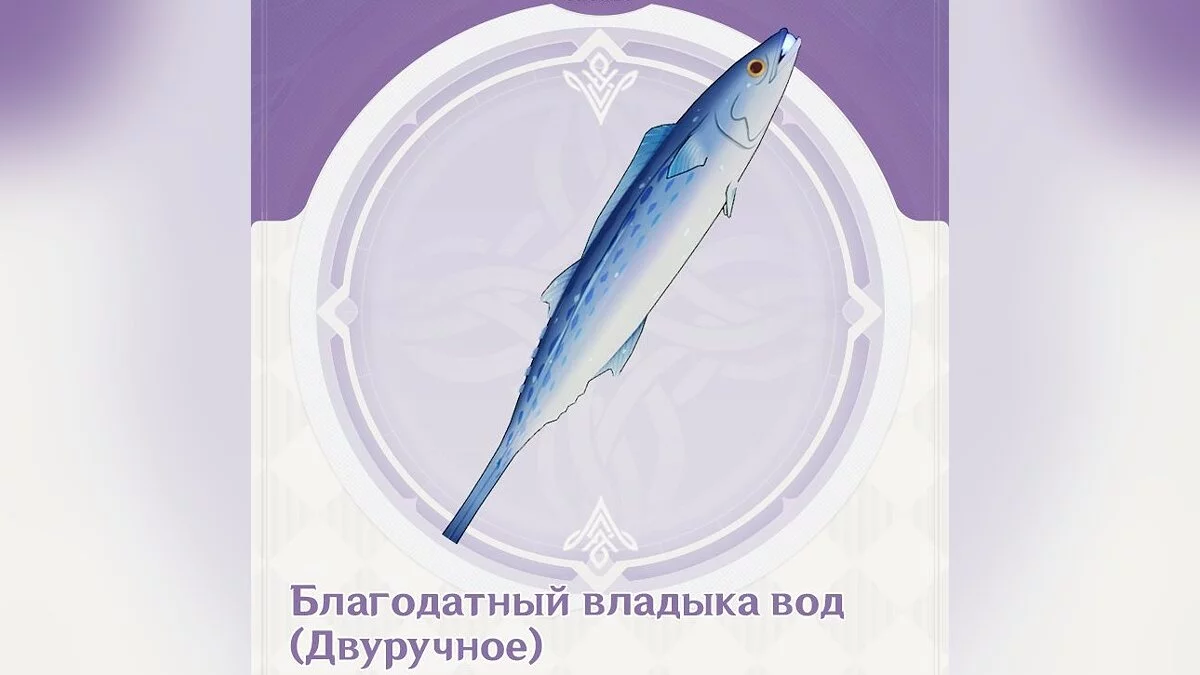 Как получить: заработать это оружие можно в обмен на рыбу в Ассоциации рыболовов Инадзумы. Для этого необходимо собрать следующие виды водоплавающих: