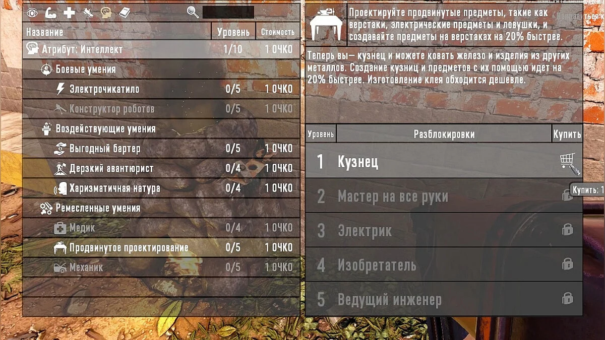 4. Для переплавки нам понадобится Кузница, очень важный предмет, который будеn необходим на протяжении всей игры. Что бы изготовить кузницу — понадобится навык «ПРОДВИНУТОЕ ПРОЕКТИРОВАНИЕ» благодаря которому нам и откроется секрет ее изготовления