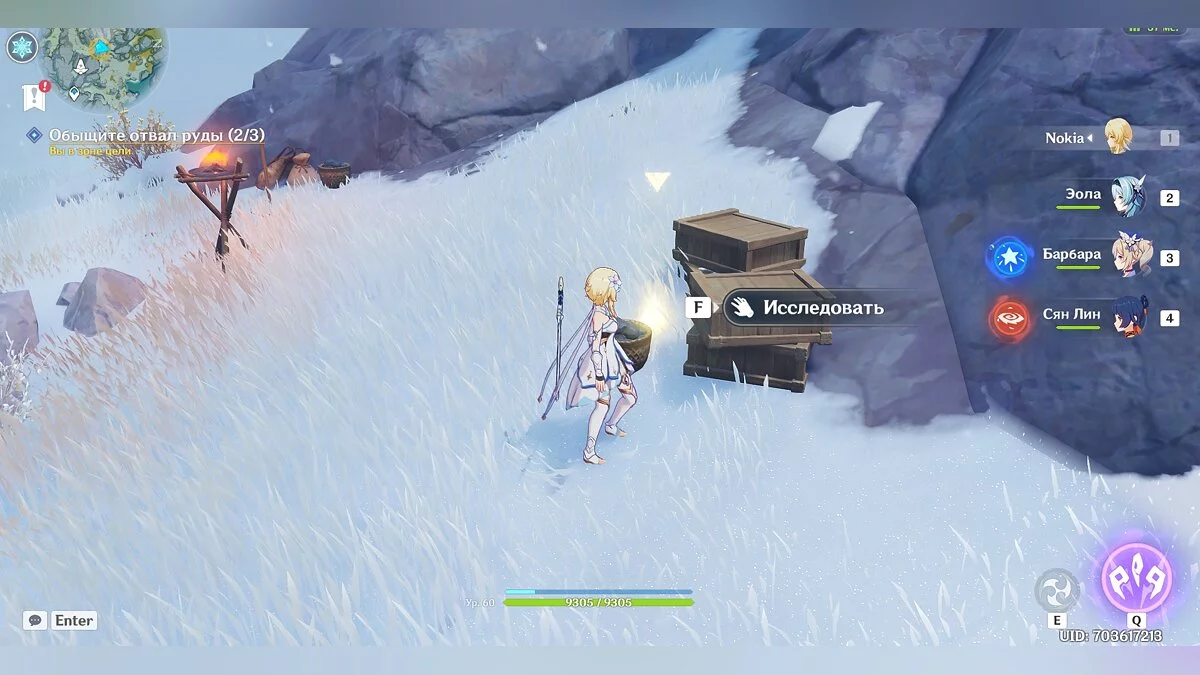 Нантак попросит вас разыскать окаменелые останки Лунного левиафана в регионе «Драконий хребет». В этот момент на карте появится отметка с местоположением цели. Обыщите три подсвеченные области в указанном месте и поговорите с Паймон.