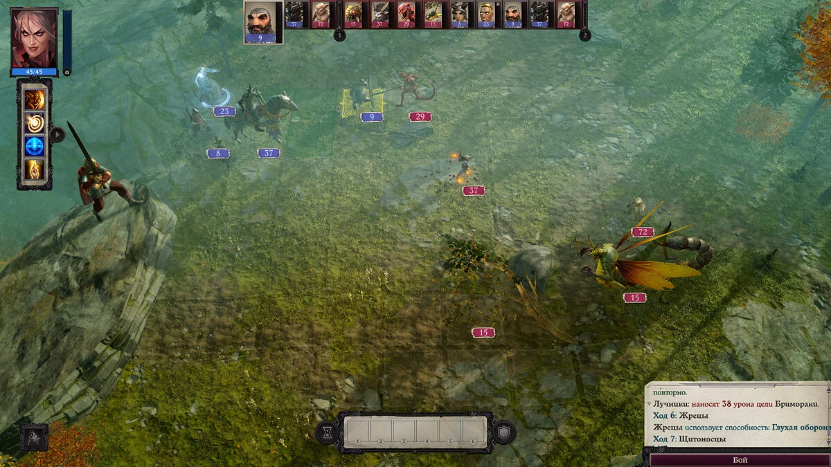 Когда ваш легион встречает армию враждебной фракции, игра переходит в боевой режим, напоминающий по стилю сражения из Heroes of Might and Magic.