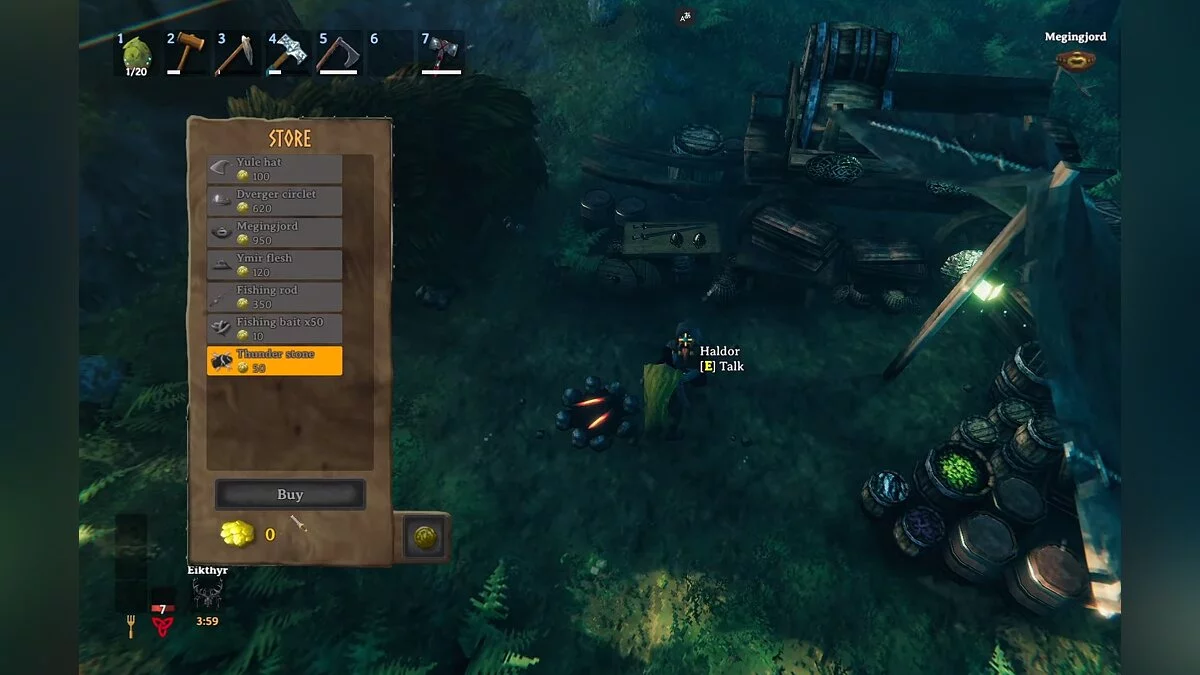 В первую очередь для постройки мусоросжигателя необходимо заняться поиском Громового камня. Единственный способ получить этот предмет — купить его у торговца Хальдора (Haldor). Этот дворф с голубой маской на лице находится где-то в биоме Шварцвальда. Приобрести необходимый предмет можно у него за 50 золотых монет. Если денег не хватает, то предварительно исследуйте несколько склепов или убейте парочку троллей. Рекомендуется ознакомиться со всевозможными способами по добыче золотых монет в гайде. Также получить информацию о способах поиска торговца можно в нашем отдельном руководстве.