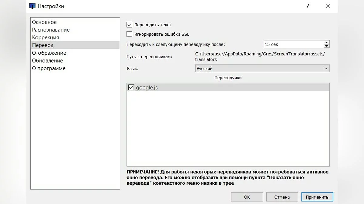 Для самых нетерпеливых есть и другой вариант — OCR-переводчик. Благодаря этой программе текст в диалогах и подсказках будет возможно распознать и перевести прямо с экрана. Чтобы всё работало, необходимо скачать ScreenTranslator с GitHub.