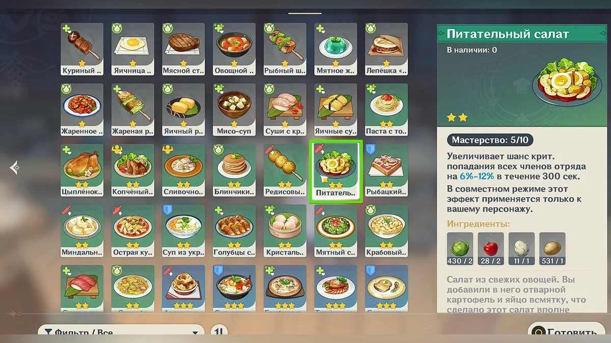 Как готовить деликатесы в Genshin Impact