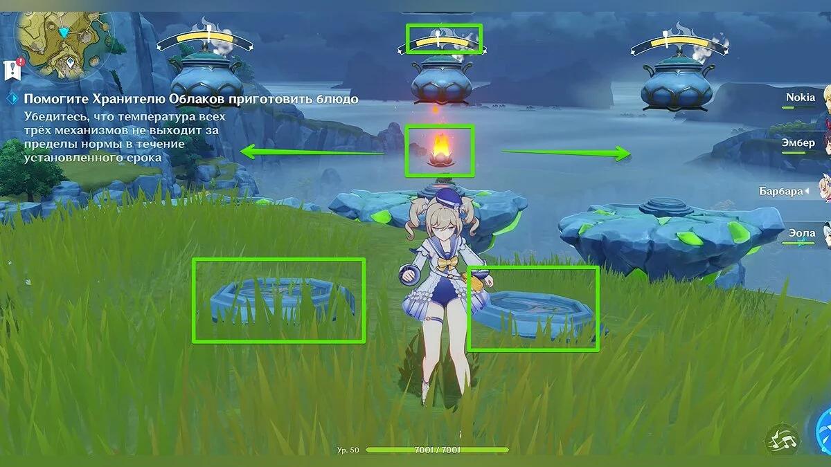 Помимо свечи, вы также можете нагревать кувшины пиро-способностями своих персонажей и охлаждать крио-способностями. Следите за температурой во всех кувшинах, чтобы приготовить деликатес и положительно завершить задание.