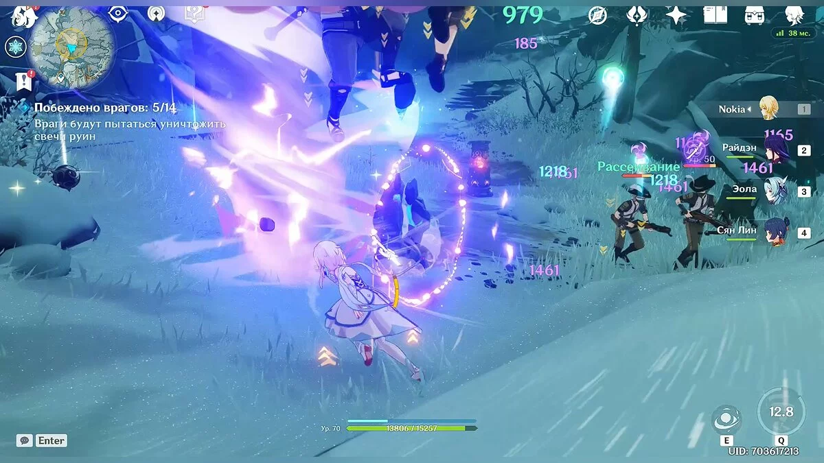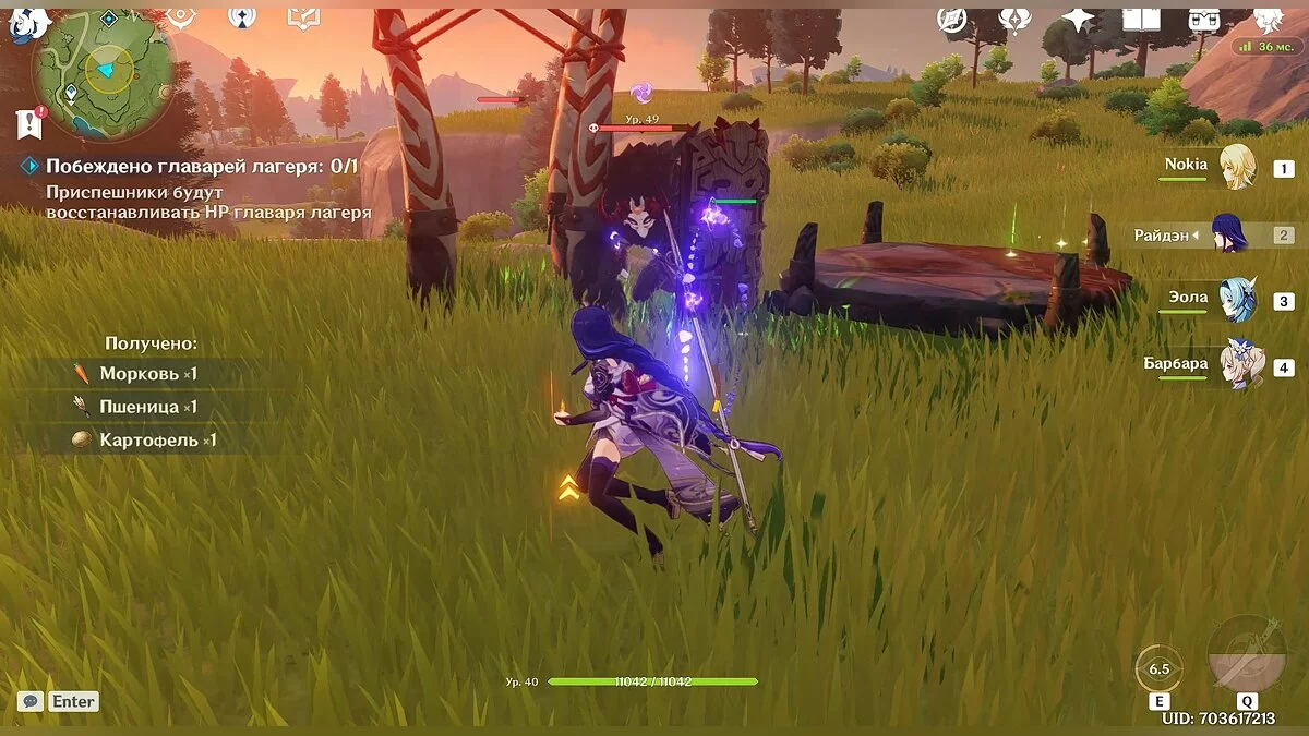 В отличие от предыдущих регионов, здесь вы не встретите каких-то отдельных главарей. Вам будут противостоять обычные противники — хиличурлы, шамачурлы, слаймы и другие монстры. Все они будут пытаться уничтожить свечи руин, которые помогают вам избавиться от холода. Если вы поднесли четыре угощения, то свечи руин очень помогут вам в сражениях. Старайтесь уничтожать врагов быстрее, чем они расправятся с этими устройствами.