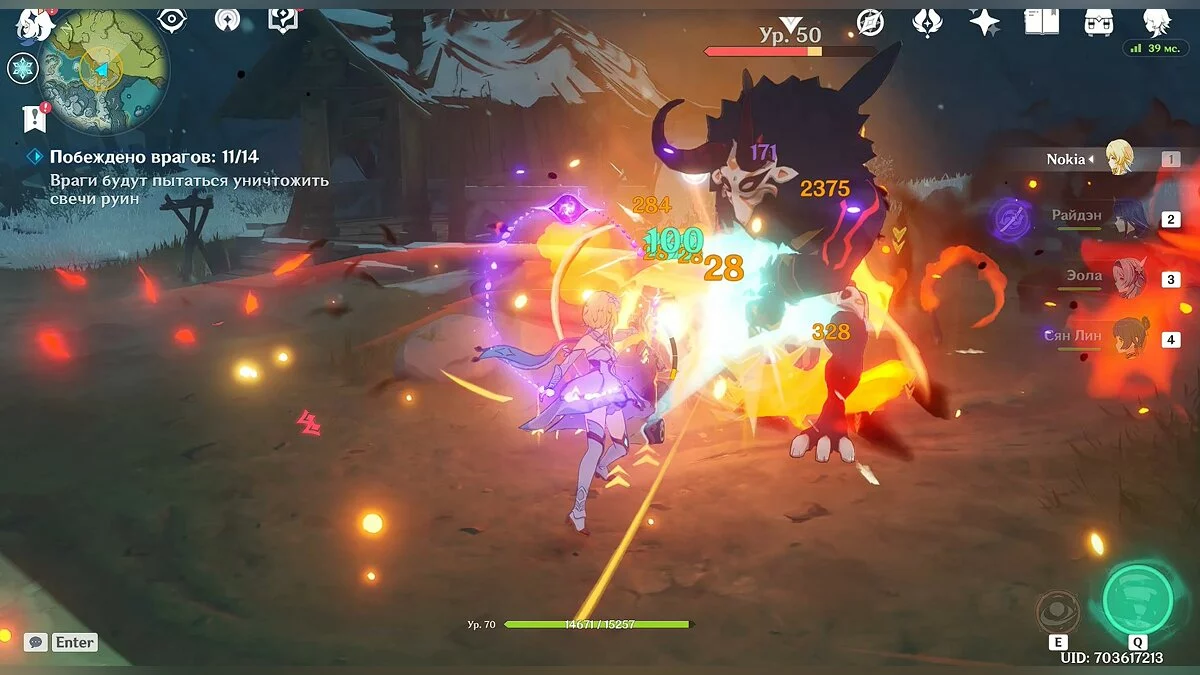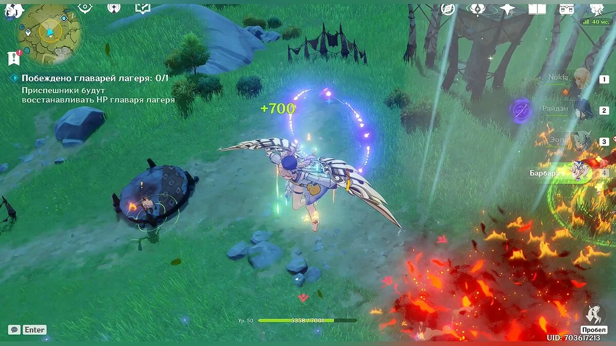 В этом испытании вам нужно победить 10 различных слаймов и 2 крио растения. Используйте пиро и анемо способности ваших героев, чтобы поджигать врагов и накладывать на них рассеивание.