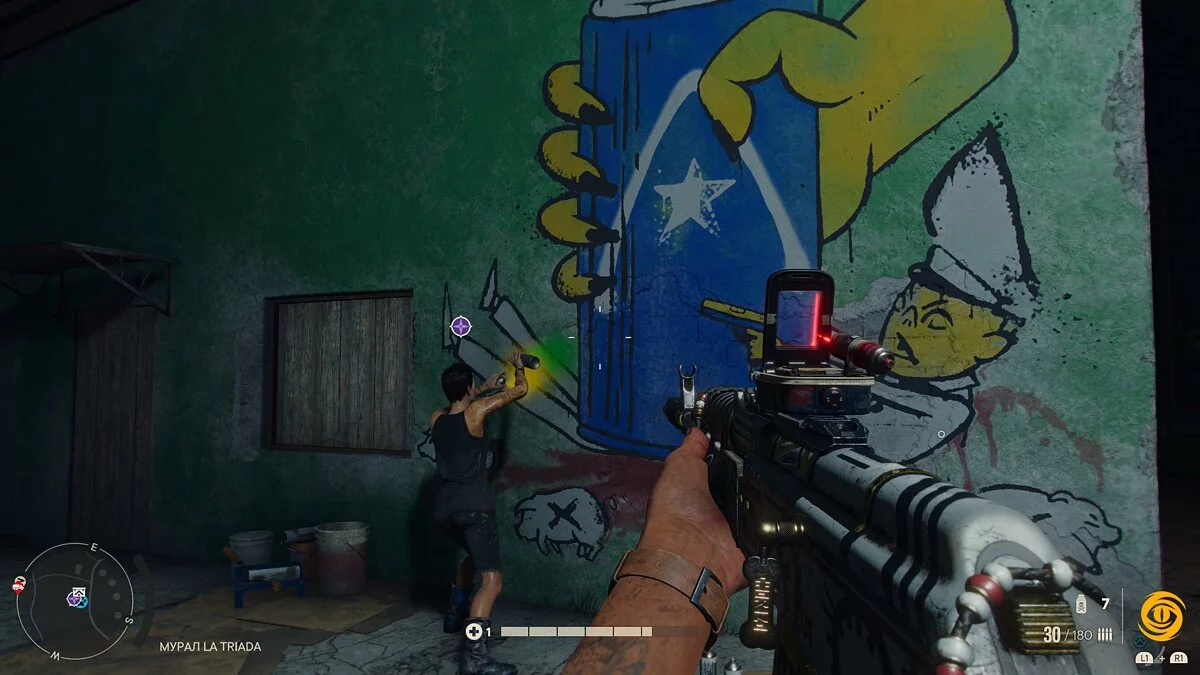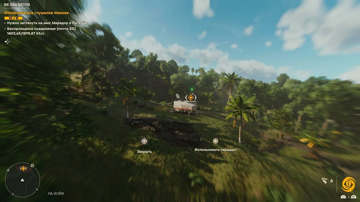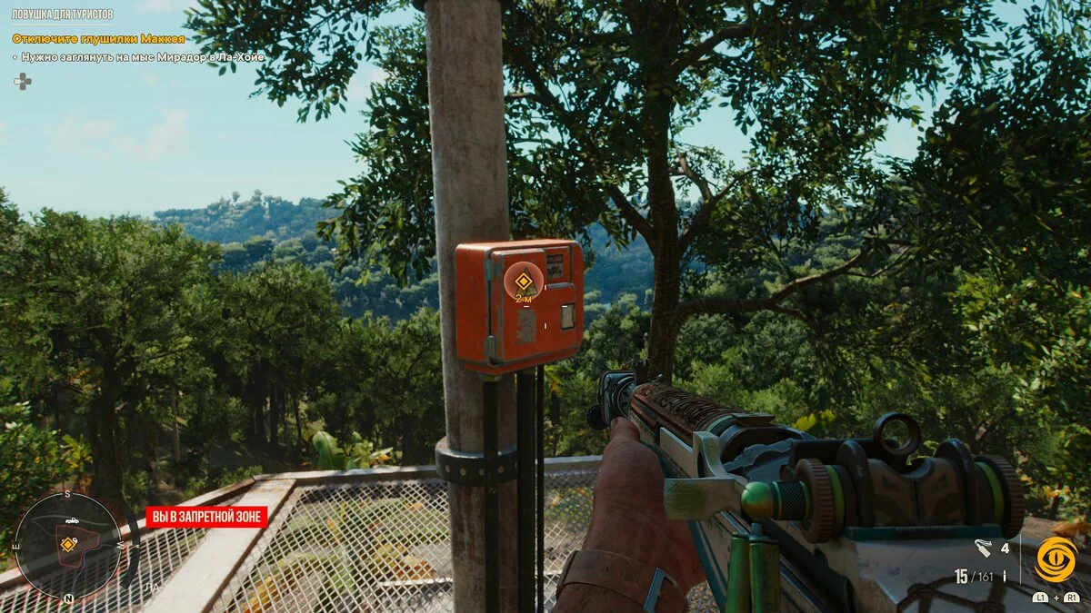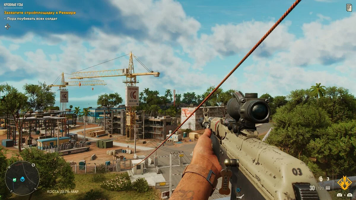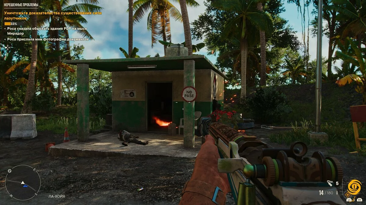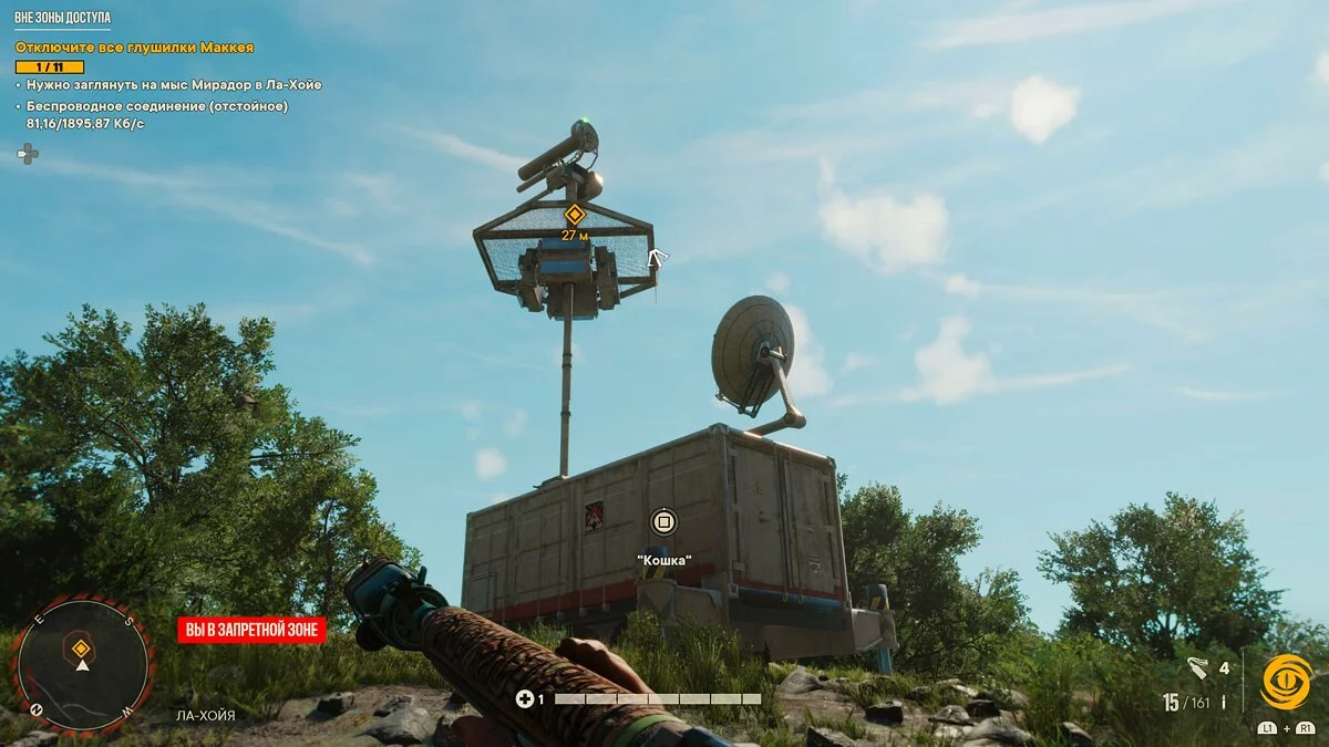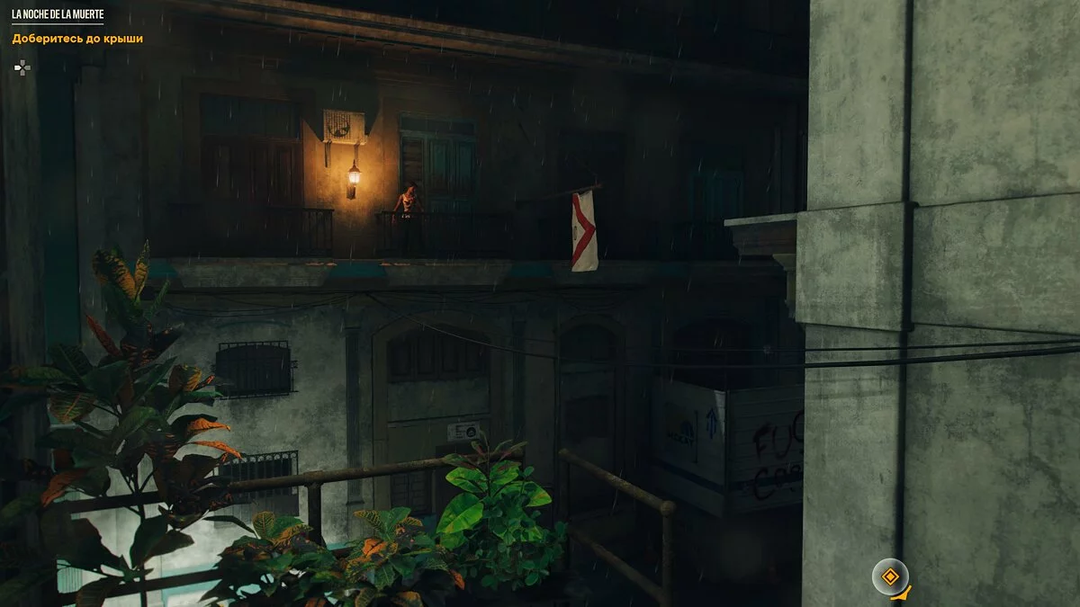 Следуем на юго-восток и уничтожаем устройство в отделение PDP Ла-Хойи. Для этого залезаем при помощи «Кошки» на крышу здания и используем трос.