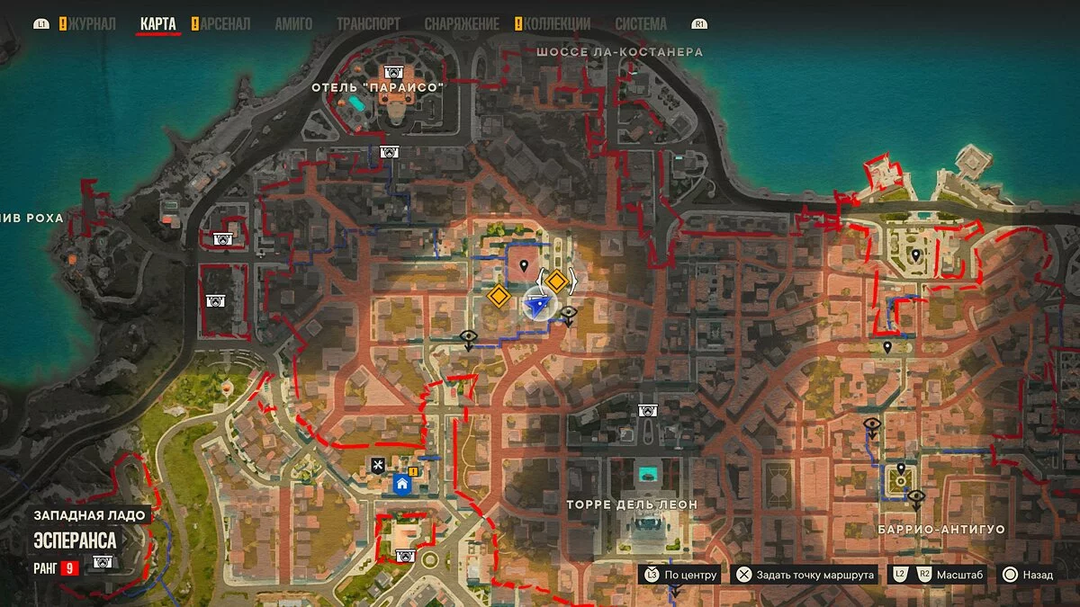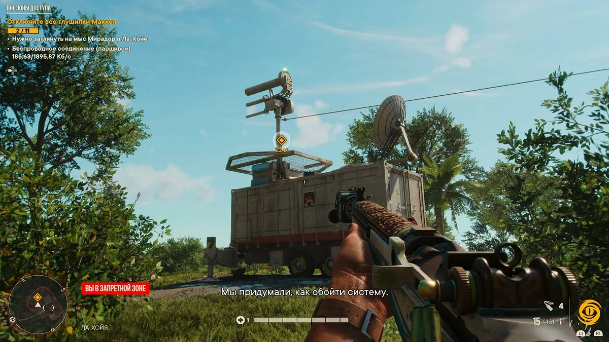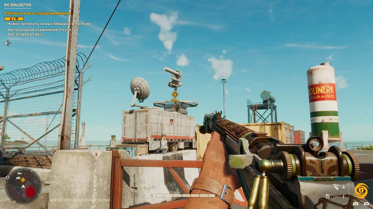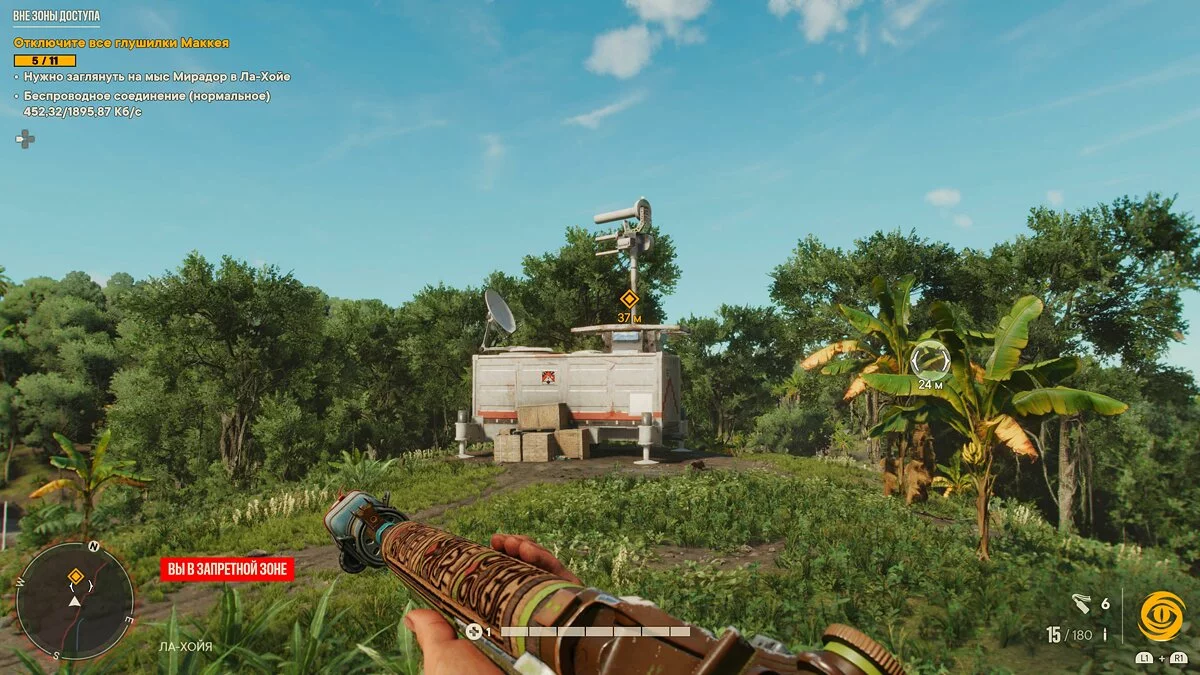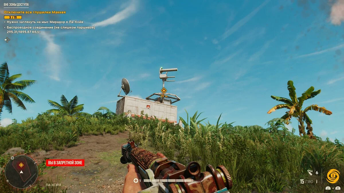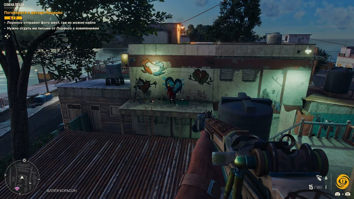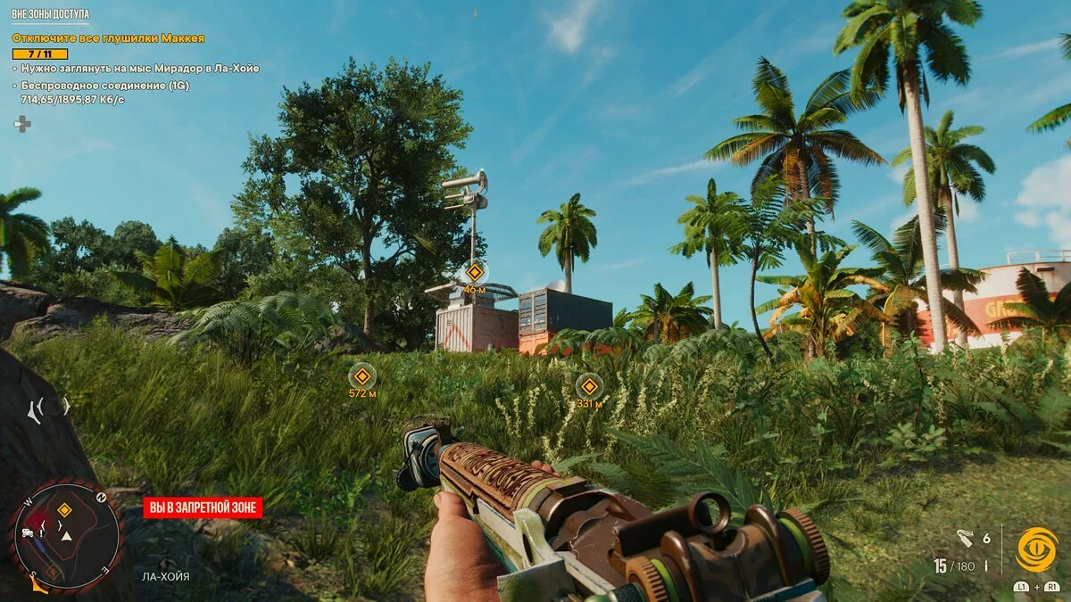Следуем на юго-восток и уничтожаем устройство в отделение PDP Ла-Хойи. Для этого залезаем при помощи «Кошки» на крышу здания и используем трос.