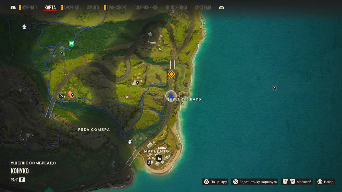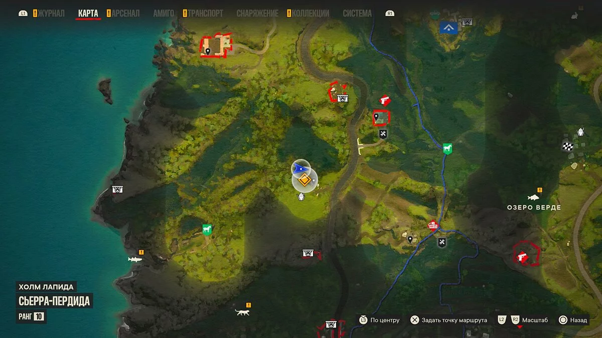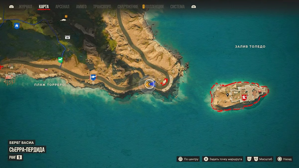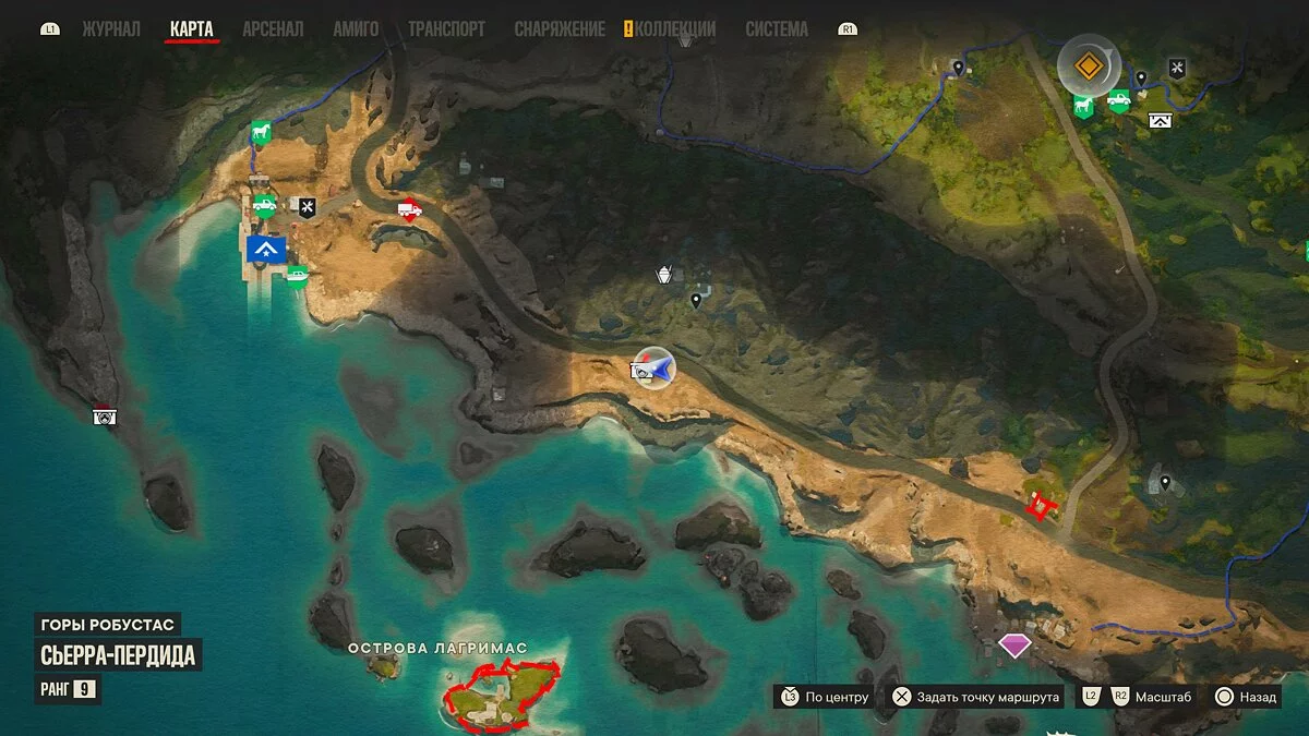 После выполнения задания дождитесь звонка от Клары, в котором девушка попросит найти Бенито. Следуем к указанной на карте точке и разговариваем с мужчиной. Вызываем транспорт и отправляемся к маркеру в северо-западную часть острова. Пробираться придётся через толпы вражеских солдат. Они хорошо вооружены и опасны, поэтому будьте бдительны и избегайте открытых конфликтов. На скриншоте ниже указано точное местоположение вражеского командира.