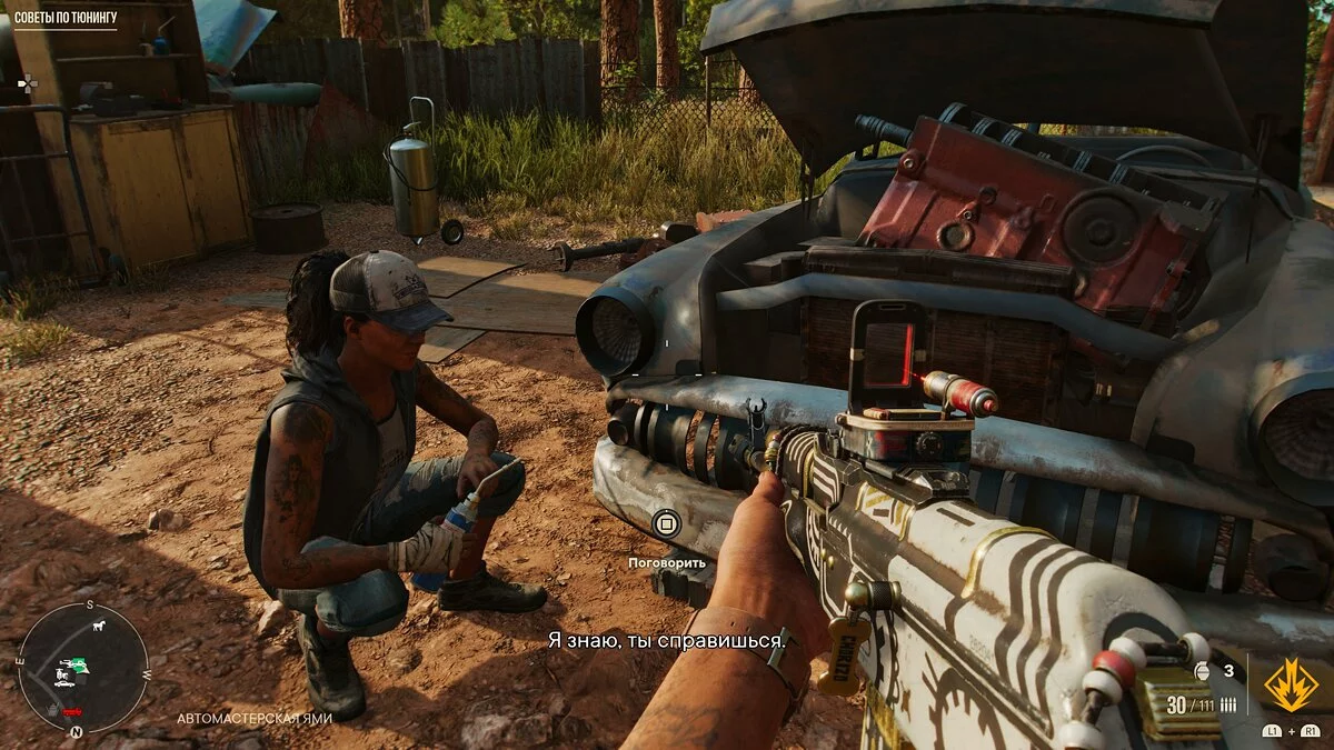 Возвращаемся к Хуану и добираемся до лагеря Клары. Устанавливаем модификации для оружия на верстаке для завершения задания.