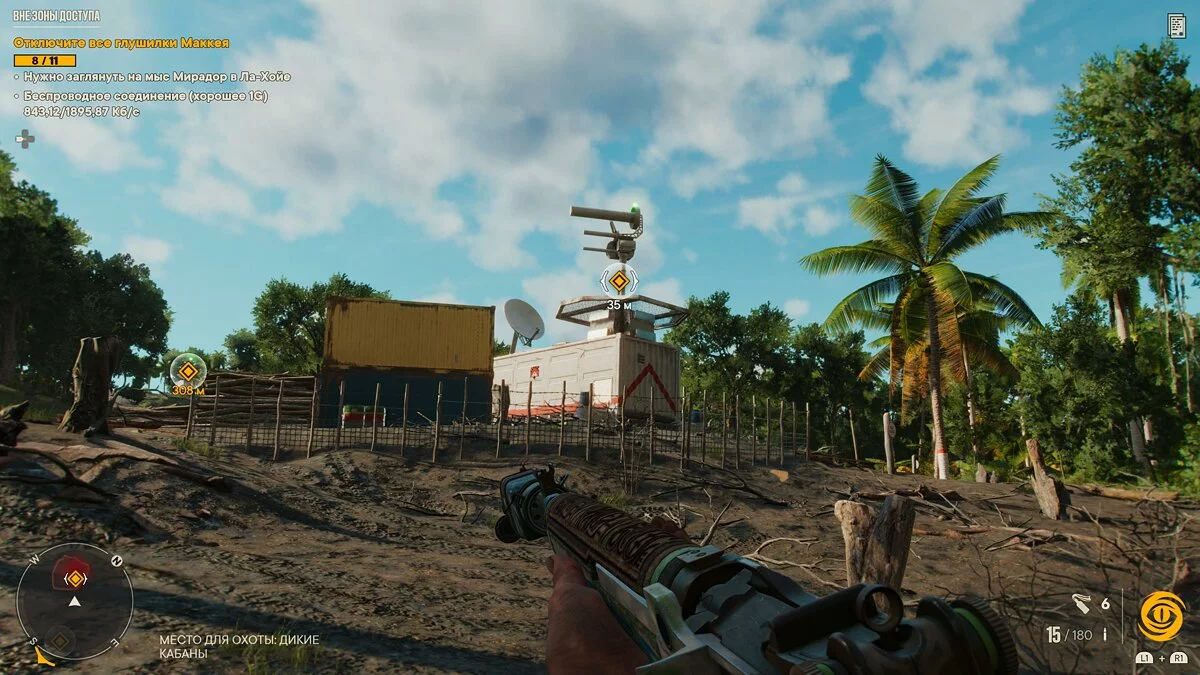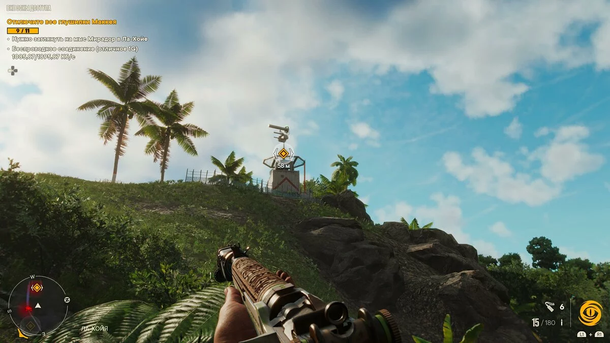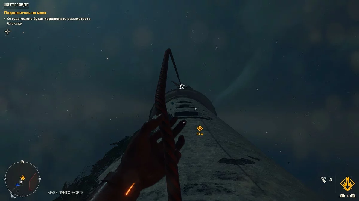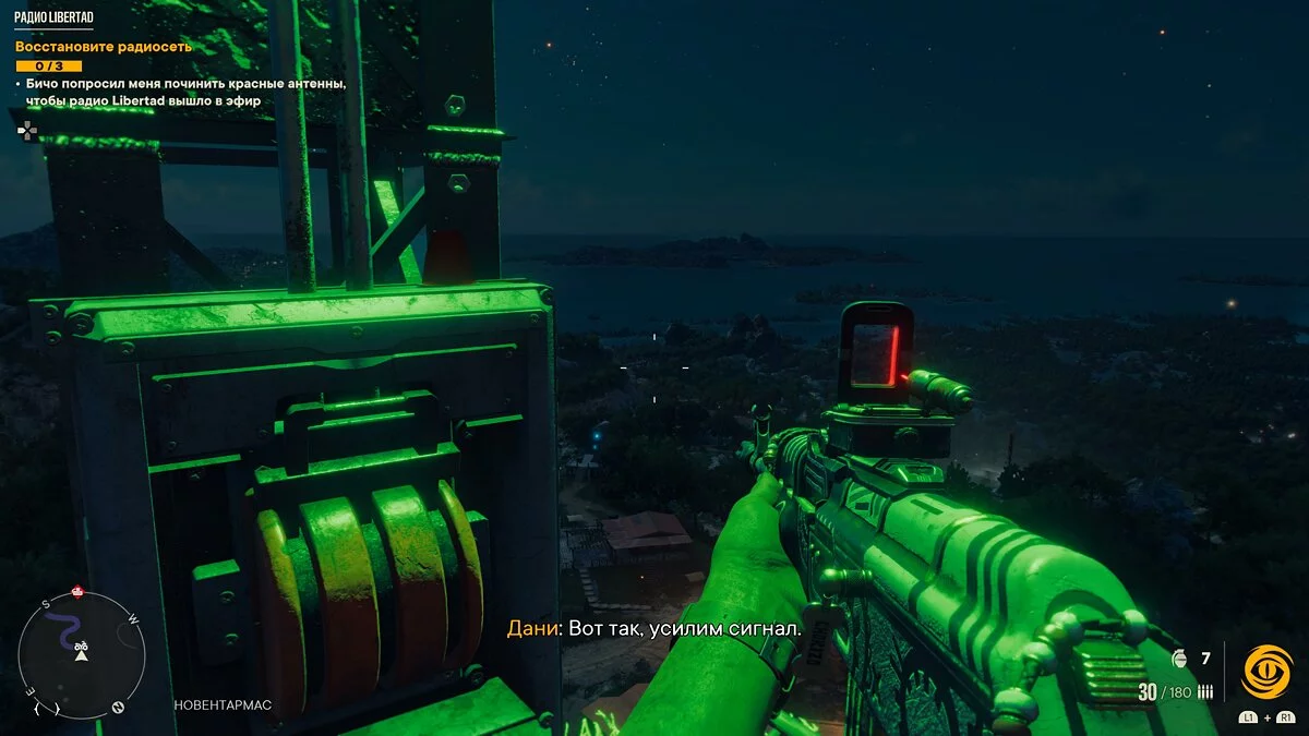 Добираемся до указанной на карте точки и забираемся на вышку.