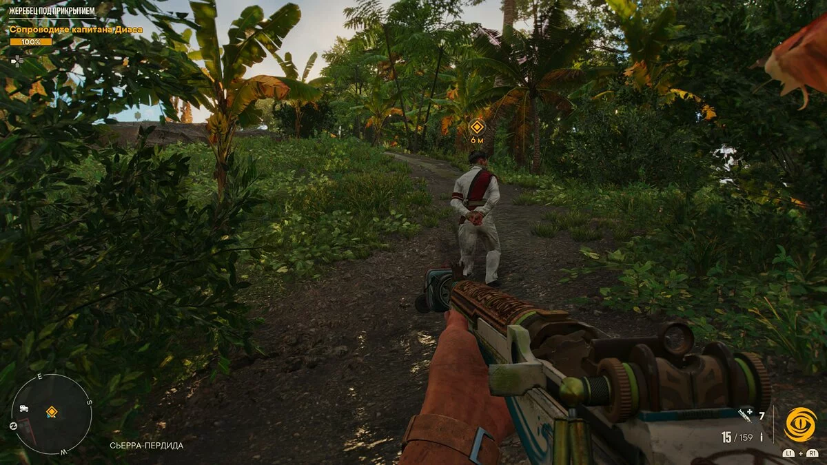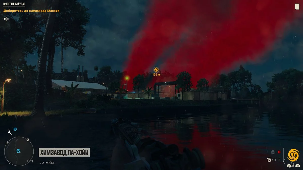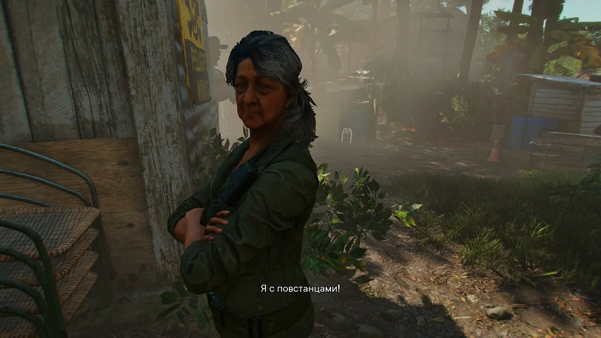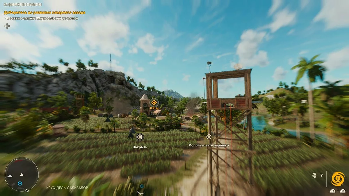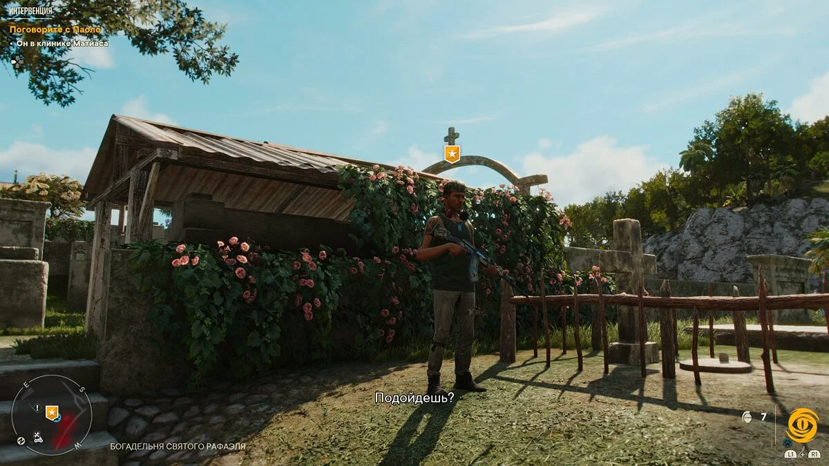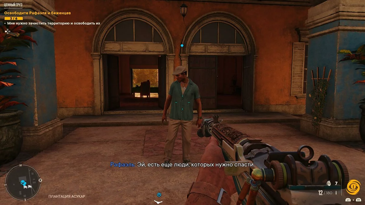 Общаемся с Кларой и следуем к фермам Перес по маркеру для встречи с Хулио. Надеваем полученные от него перчатки и маску. Двигаемся за повстанцем. Забираемся на вышку, изучаем местность плантации и вступаем в сражение с отрядом противника.