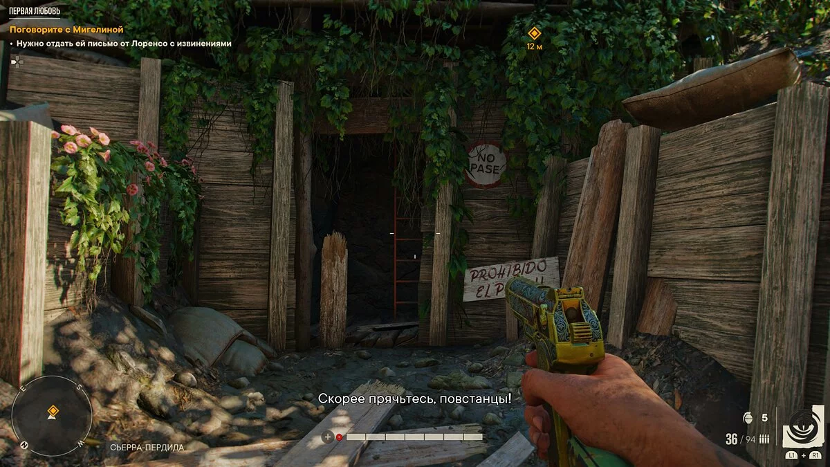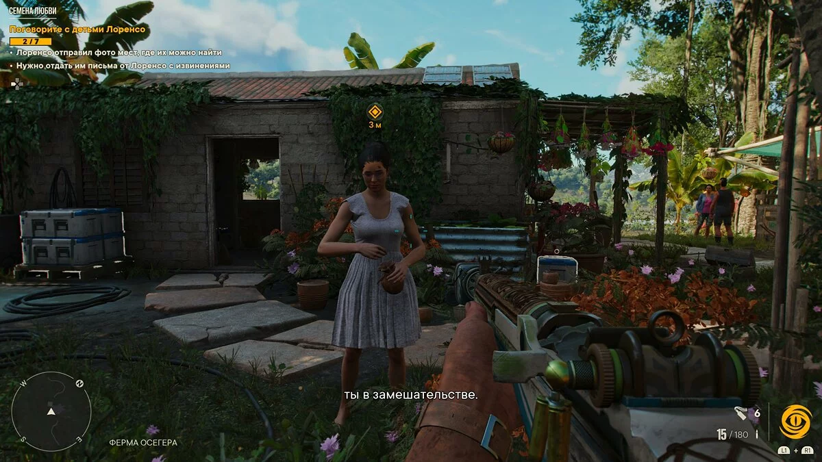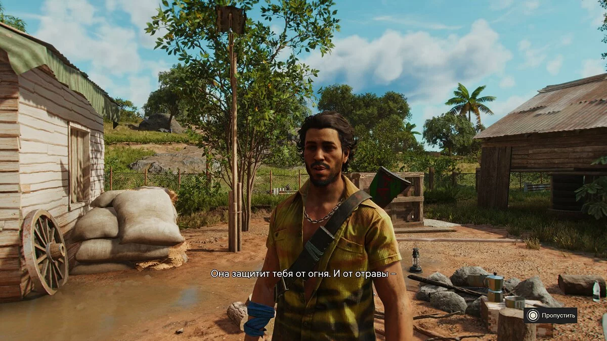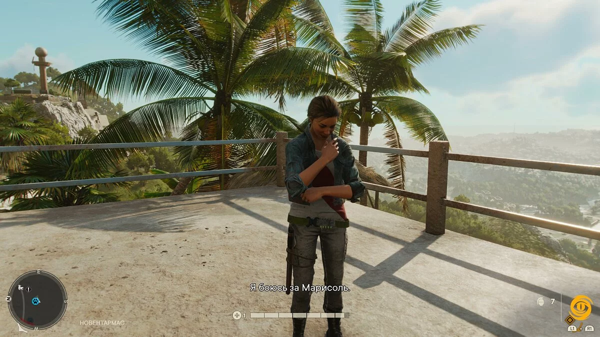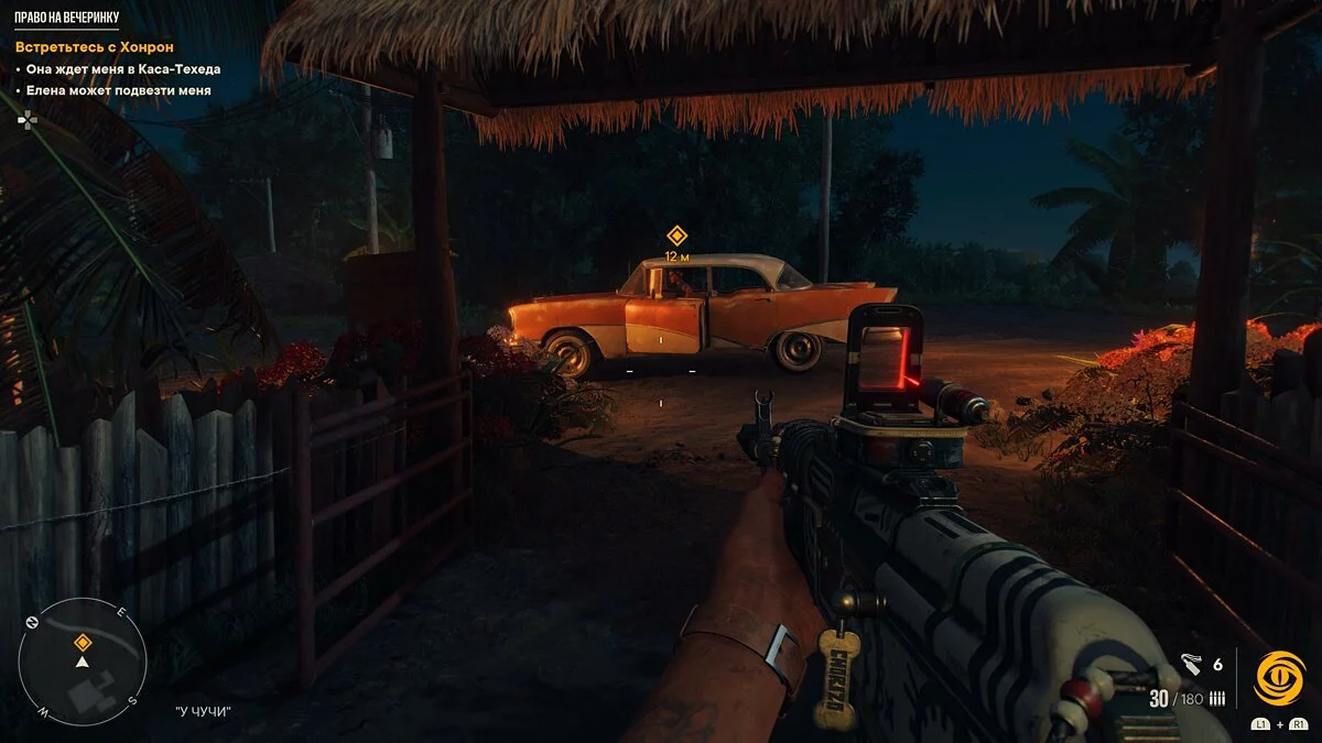 Общаемся с Кларой и следуем к фермам Перес по маркеру для встречи с Хулио. Надеваем полученные от него перчатки и маску. Двигаемся за повстанцем. Забираемся на вышку, изучаем местность плантации и вступаем в сражение с отрядом противника.