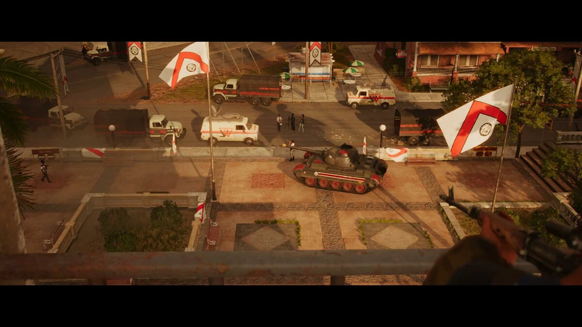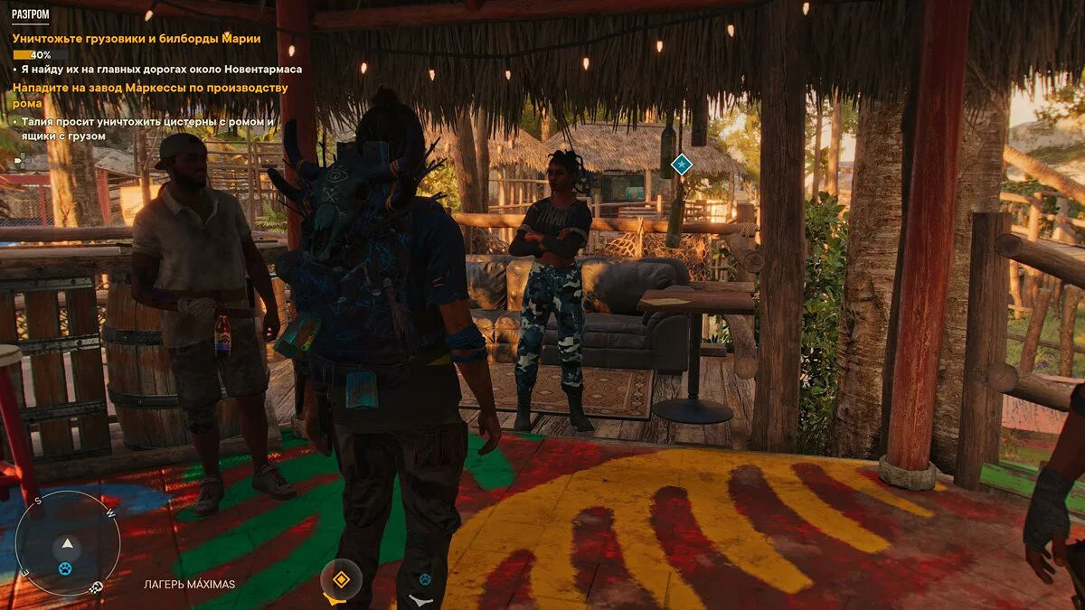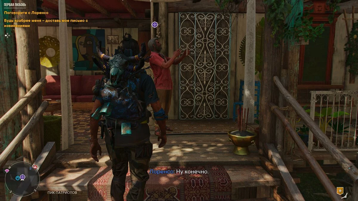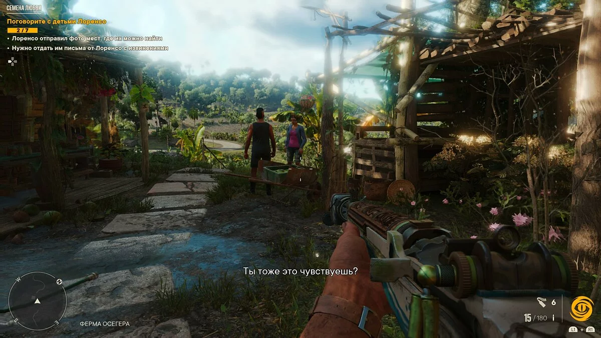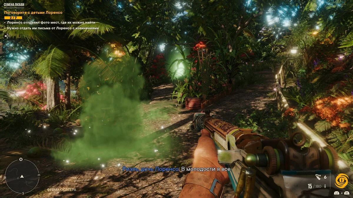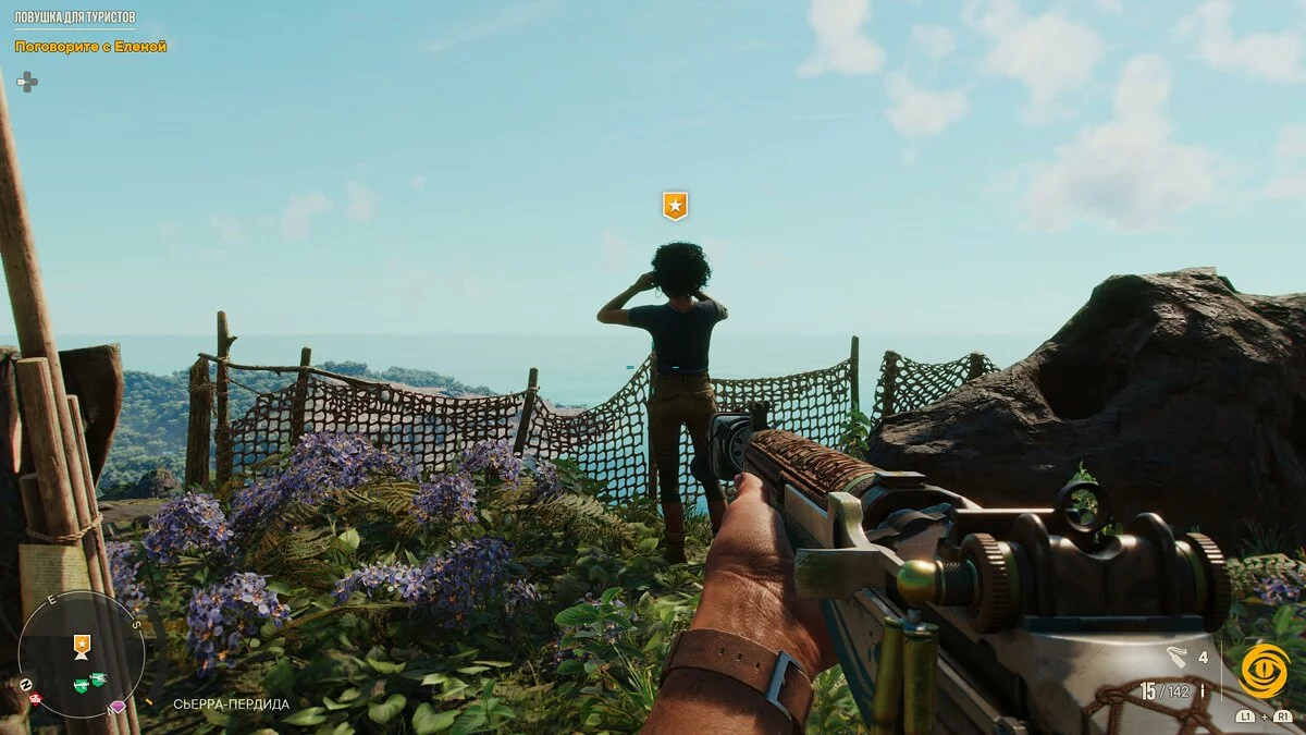 Общаемся с Кларой и следуем к фермам Перес по маркеру для встречи с Хулио. Надеваем полученные от него перчатки и маску. Двигаемся за повстанцем. Забираемся на вышку, изучаем местность плантации и вступаем в сражение с отрядом противника.