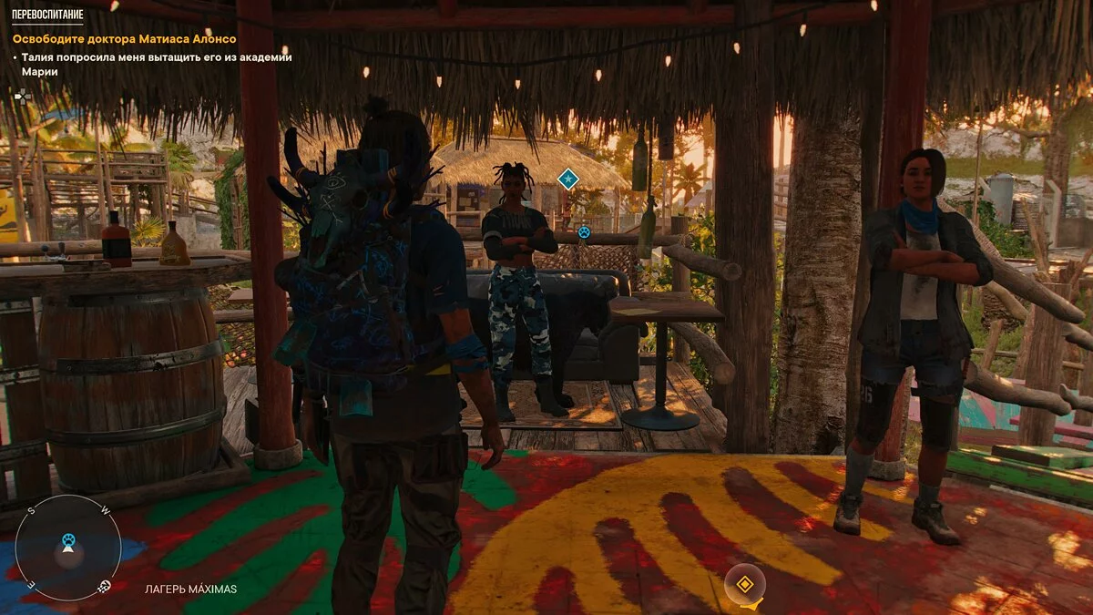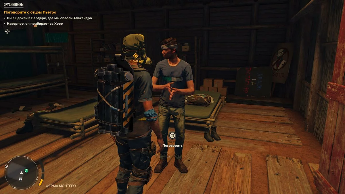 Активируем задание у Клары и следуем в указанную на карте деревню. Найдём мужчину в баре. Убиваем всех солдат и следуем за Хуаном.