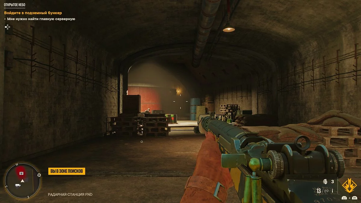 Натыкаемся на патруль, уничтожаем солдат и проходим внутрь бункера. Изучаем записку и идём по прямой. В качестве подсказки к маршруту следуем по синей полоске, отмеченной на карте. Забираем «Кошку» и поднимаемся наверх.