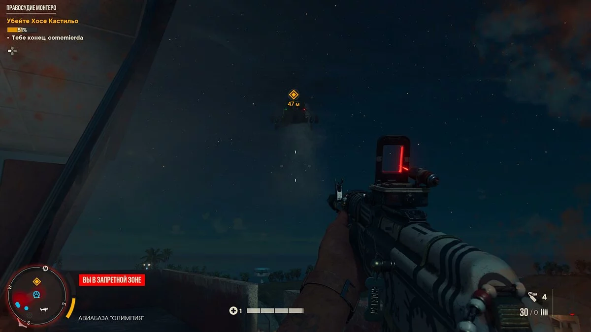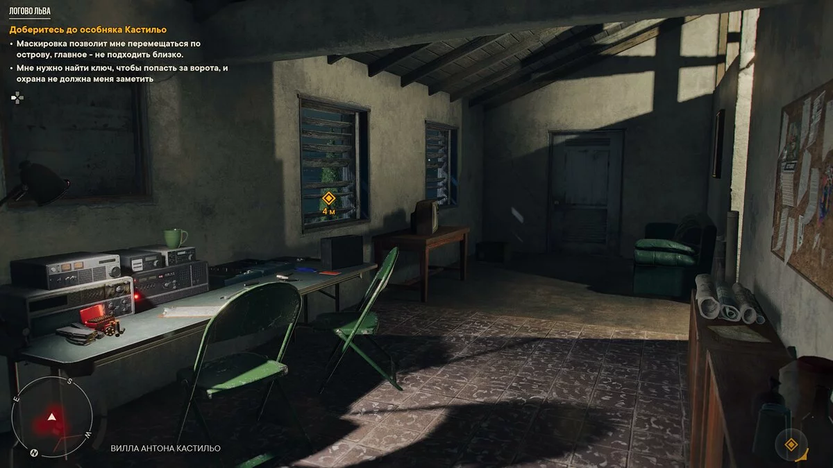 После просмотра видеоролика, герой получит обратно своё снаряжение. Уничтожаем все цели на вилле Кастильо и встречаемся с Хуаном во внутреннем дворике.