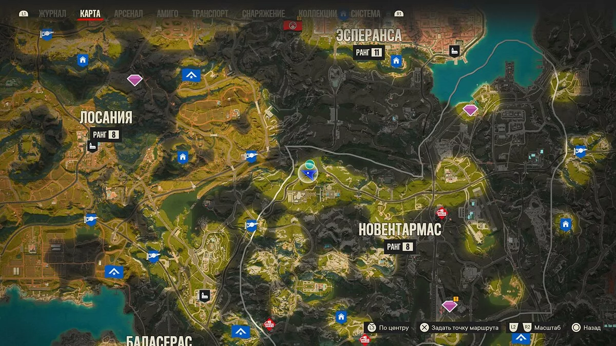 Отправляемся к маркеру в регион Ла-Хойя. Активируем задание у Росы Мель Пакете. Выходим на дорогу, вызываем машину и едем к маркерам.