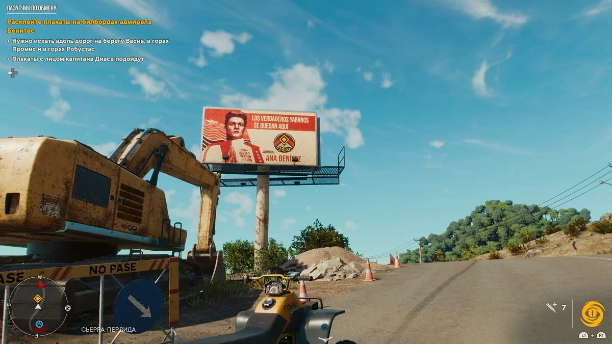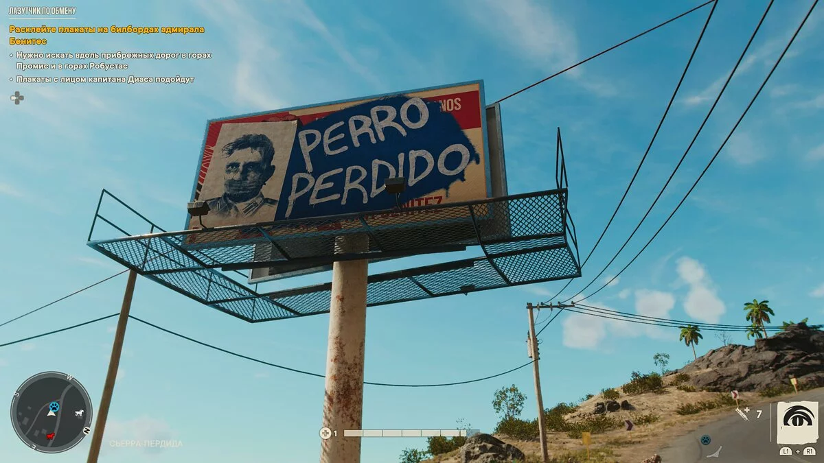Возвращаемся к Гилберто для активации следующего задания. Добираемся до указанной на карте точке и забираем плакаты. Игроку необходимо оставить сообщения для военных. Высаживаемся на верфи «Суреньо» или на северном КПП на берегу Васиа и двигаемся вдоль южной дороги. Ниже указаны все места с плакатами. Игроку достаточно испортить три плаката, чтобы военные получили сообщение.