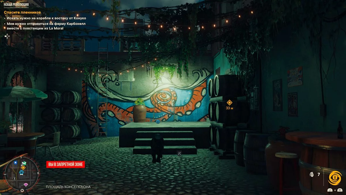Возвращаемся в штаб Libertad на небольшой остров и разговариваем с Хуаном. Отправляемся доставлять «Вивиро». В южной и северной точке всё пройдёт без проблем, а у центрального маркера возле маяка попадём в плен к Кастильо.