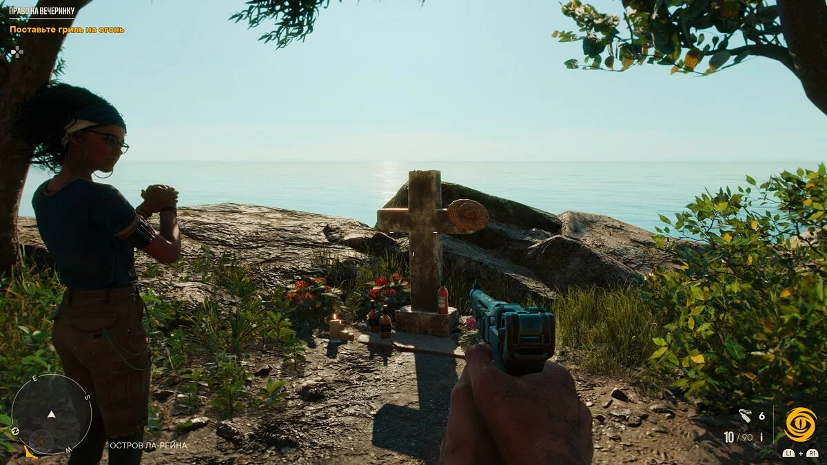 Садимся в машину к Елене и доезжаем до берега, где героев уже поджидает Хонрон. Забираемся на гидроцикл и добираемся до острова. Разговариваем с девушками и отправляемся на поиски еды и гриля. Просим помощи у Хонрон и следуем за ней.