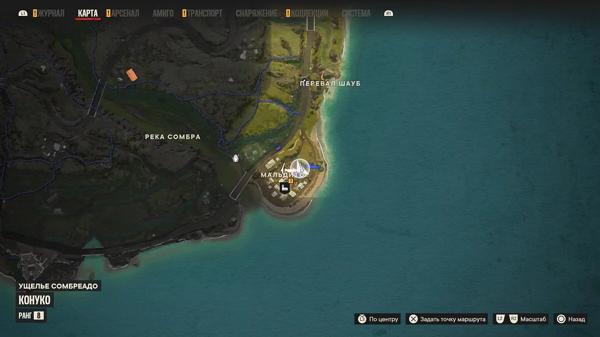 Следуем по карте в регион Конуко к указанной точке и находим накопитель во внутреннем дворике за деревянным домом. Флеш-карта расположена в Каса-Ривера, которая находится к западу от убежища «Хабанера».