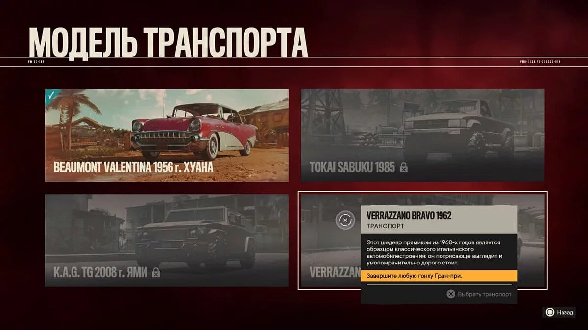 Verrazzano Bravo 1962 станет наградой за завершение любой гонки «Гран-при» (Gran Premio). Всего в Far Cry 6 доступно 12 гонок. Это короткие заезды, которые приносят вам деньги и некоторые другие награды. На скриншотах ниже можно найти одну из ближайших гонок.