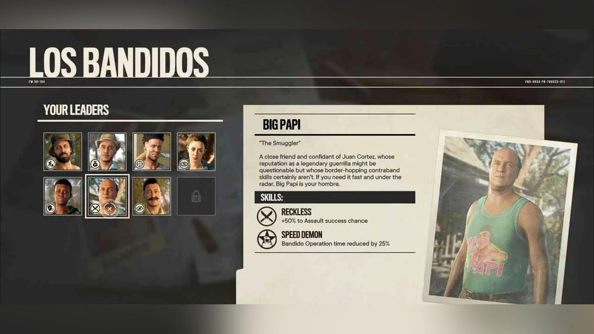 Лидеры Bandido — ваши верные союзники, которых можно отправить на самостоятельное выполнение специальных операций. Чем больше у вас лидеров, тем больше миссий можно выполнить одновременно. Это своего рода пассивная мини-игра, чем-то напоминающая руководство братством ассассинов из Assassin's Creed: Brotherhood.