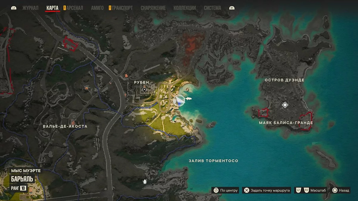 Десантируемся в городе Баррига и при помощи костюма-крыла летим на юг к озеру Игадо. Добираемся до ранчо Каса-Маррокин. Залезаем на крышу дома и находим сундук.
