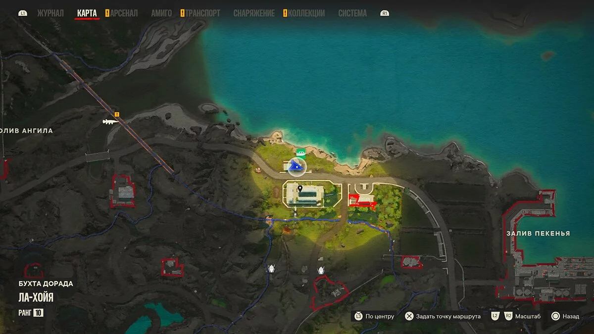Десантируемся в убежище «Гуарача» в районе Ла-Хойя и летим на север к ближайшему берегу. Здесь найдём клинику «Гордость народа», расположенную справа через дорогу от ЖК «Сендровский». Сундук расположен на крыше больницы.