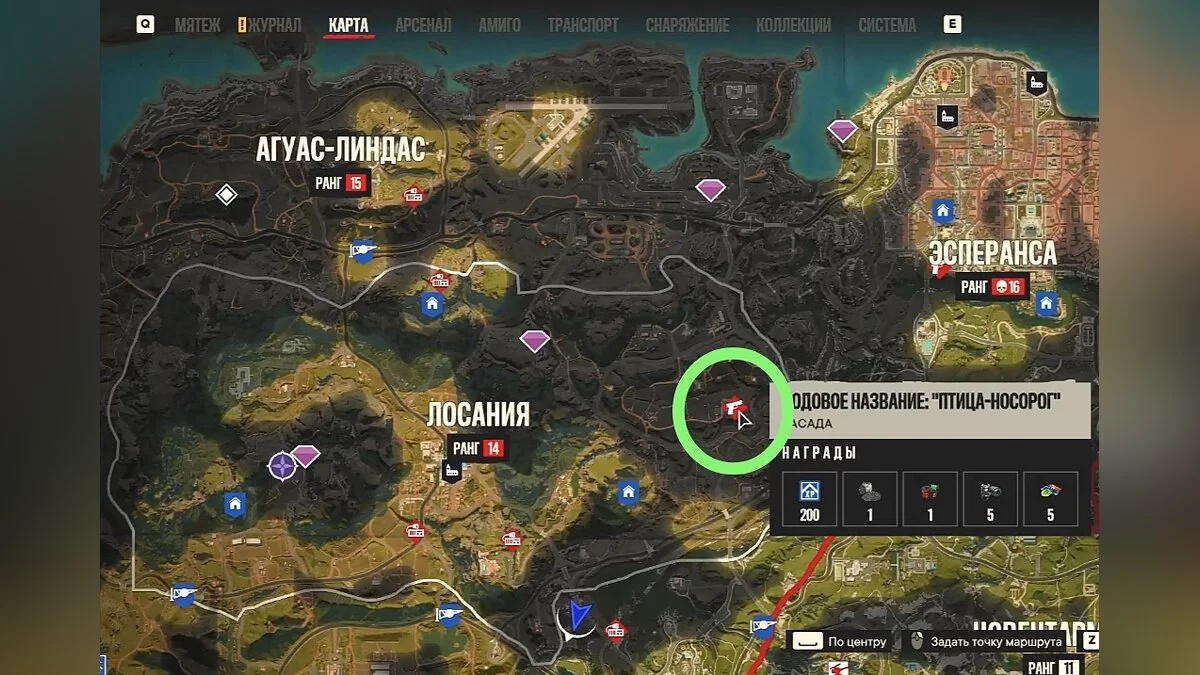 Первая засада находится в регионе Мадругада. Искать нужно на востоке Лосании. Засада носит кодовое название «Птица-носорог» (Hornbill). За устранение засады вы получите 200 очков опыта и ресурсы для крафта.