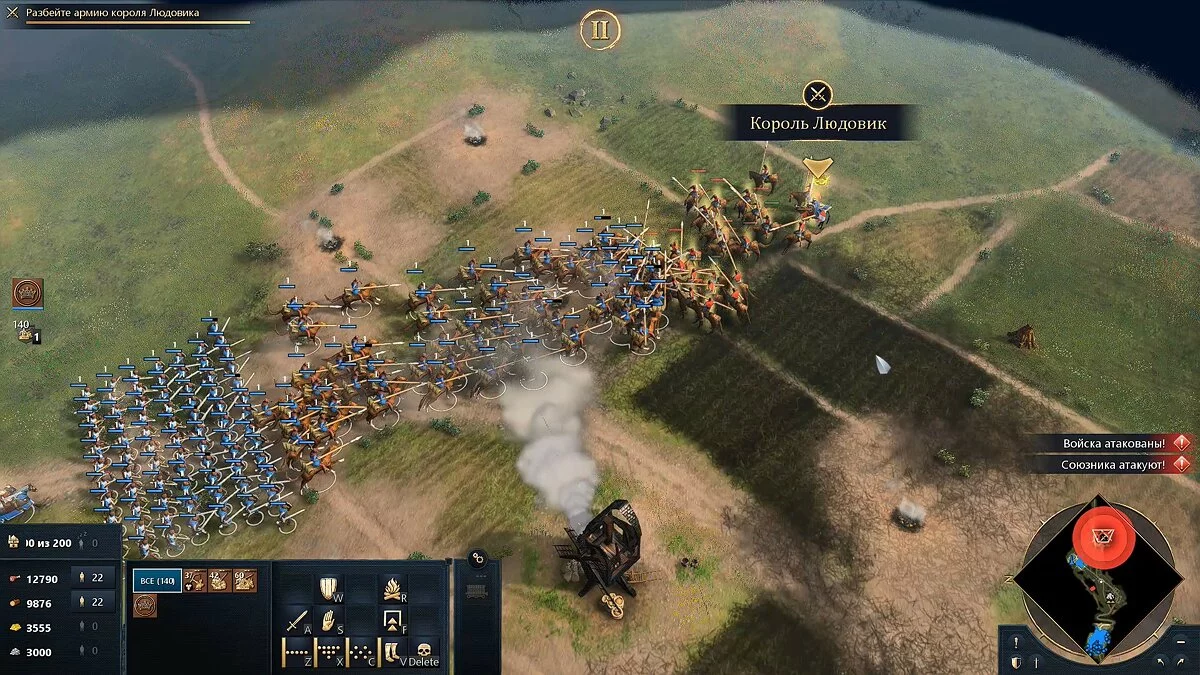 Собрав сильную армию, следует поставить в очередь для создания максимально доступное количество юнитов, так как одной армии вам не хватит для финального сражения с французским королём.