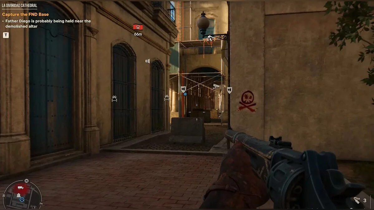 Альтернативный вариант — пистолет «Кровопийца». У него зажигательные патроны, а каждое попадание по противнику с высокой вероятностью восстановит ваше здоровье. Найти это оружие можно на вилле Хосе. Вы попадёте туда по ходу прохождения сюжетного задания «Наполеон эль Пекеньо». Это место мы указали на карте: