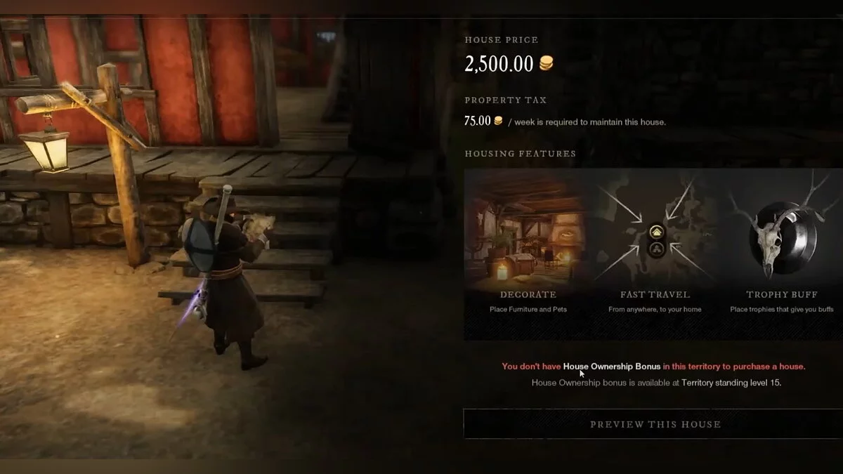 Чтобы приобрести первый дом, необходимо иметь 15-й уровень персонажа и 10-й уровень репутации на текущей территории. Для покупки второго дома нужен 35-й уровень персонажа и 15-й уровень репутации, а для третьего — 55-й уровень персонажа и 20-й уровень репутации. Помимо этого вам потребуется золото. Его количество зависит от установленных цен и типа дома. Отметим, что на покупку первого строения действует скидка в 50%.