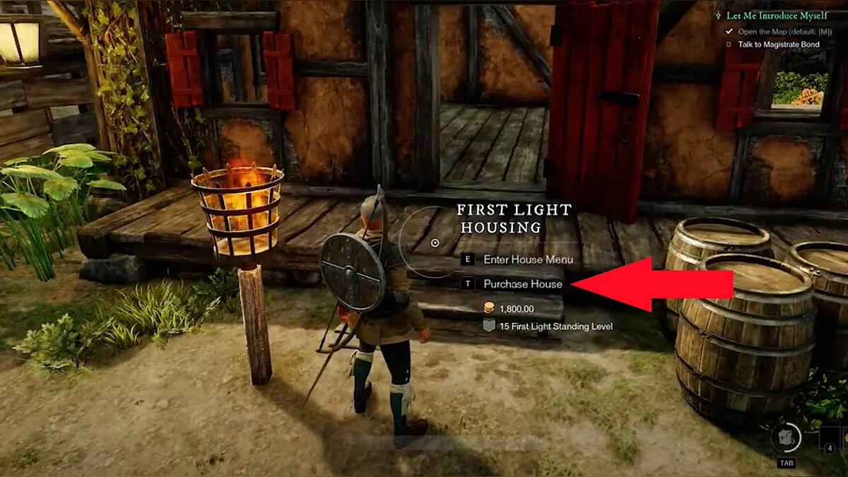 Игрок может приобрести от одного до трёх домов в мире New World. Чтобы произвести покупку, просто подойдите к любому строению, которое доступно для приобретения, и во всплывающем меню выберите пункт «купить здание» (Purchase house).