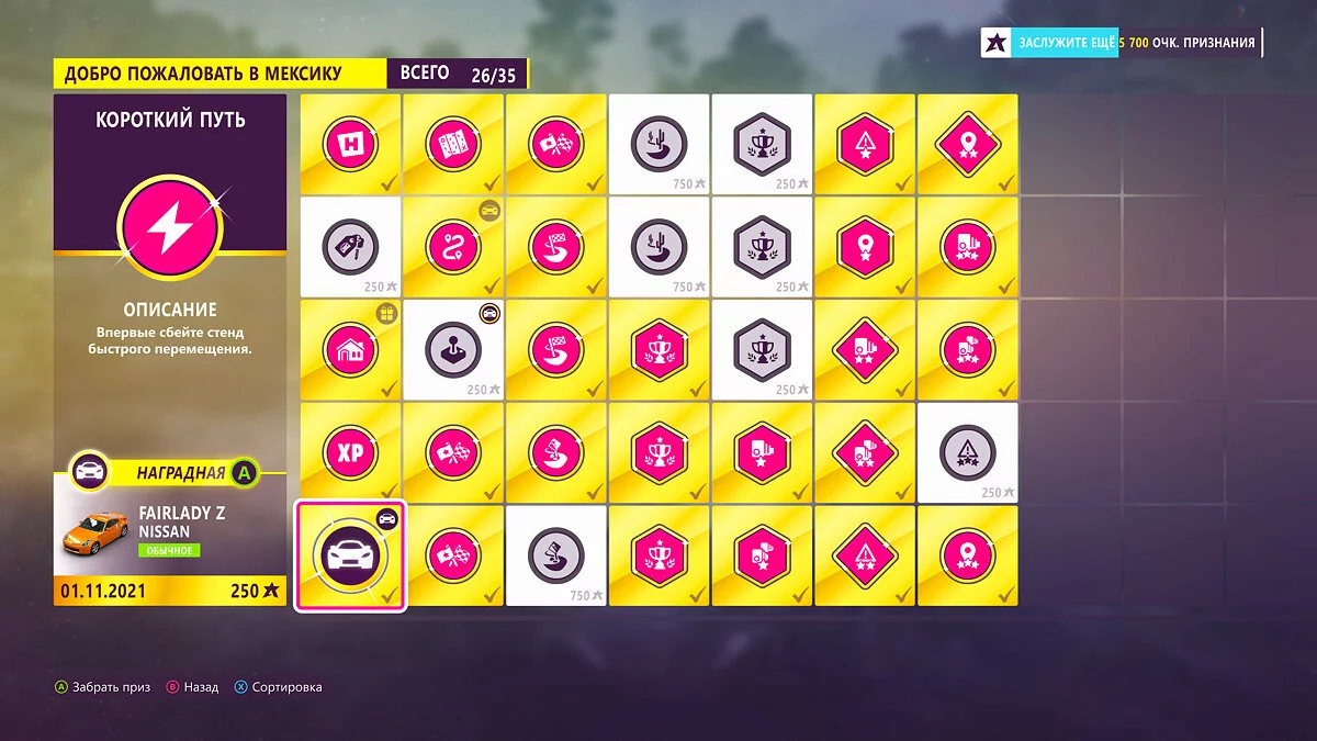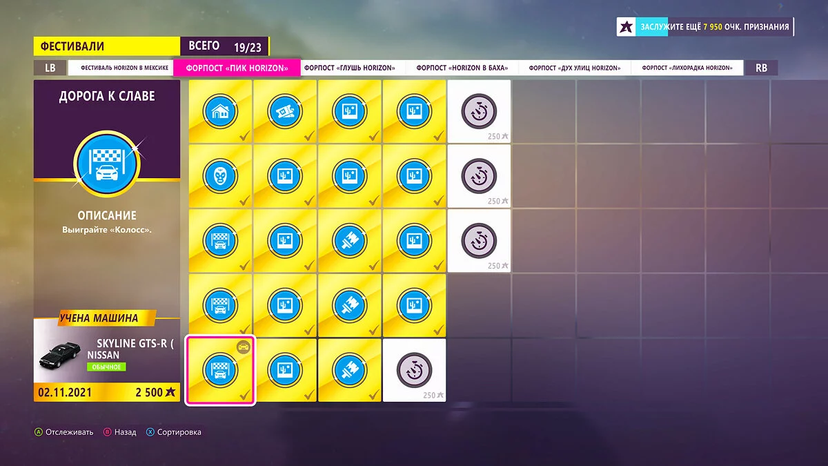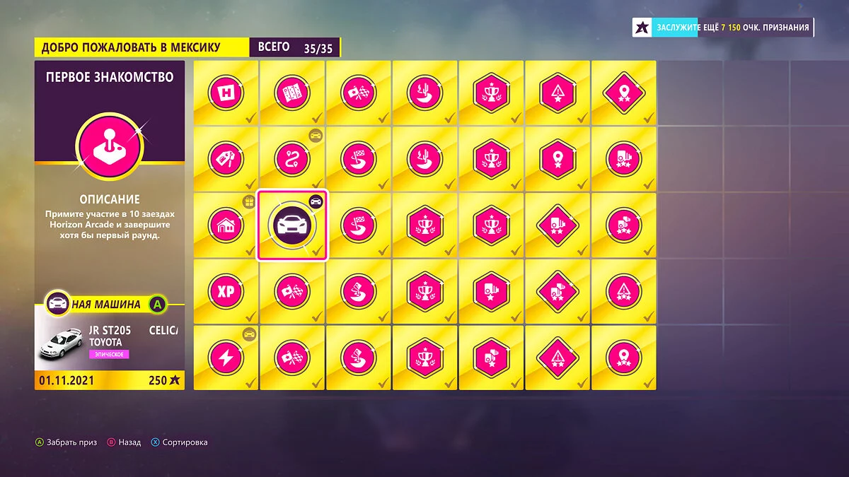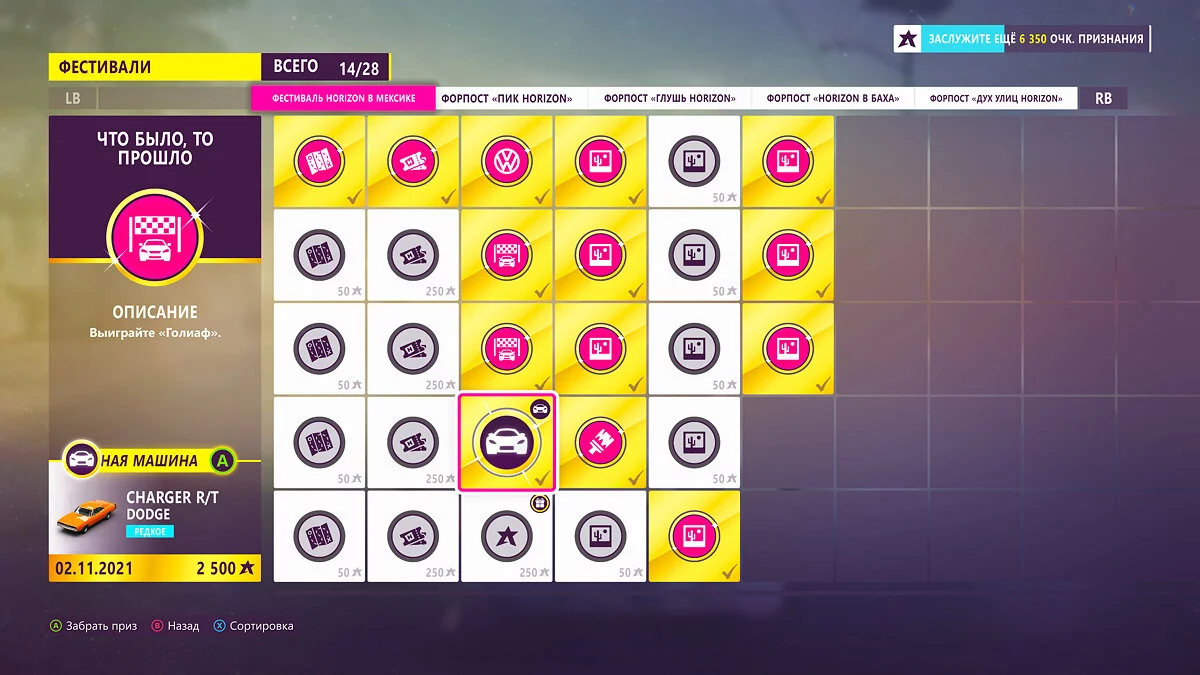Успешно завершаем первый раунд в гонке Horizon Arcade. Проще всего выполнить заезд на скорость на машине с мощным двигателем. Для получения автомобиля активируем награду в соответствующем разделе.