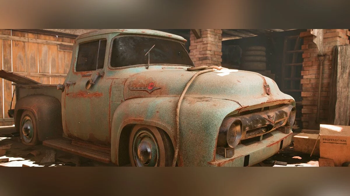Амбар с этим автомобилем расположен в центральной части реки немного севернее от самой южной дороги острова.