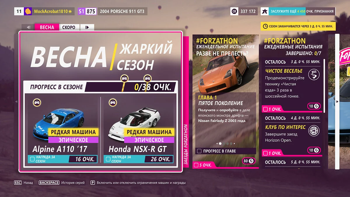 Фестивальный плейлист — это коллекция того, что вы сделали за сезон и что еще предстоит сделать. В разные сезоны появляются уникальные мероприятия и награды, поэтому обязательно проверяйте сезонные испытания. Возможно, вы найдете там что-то забавное, о чем не знали раньше, а также это отличный способ получить редкие автомобили, которые не купить привычным способом.