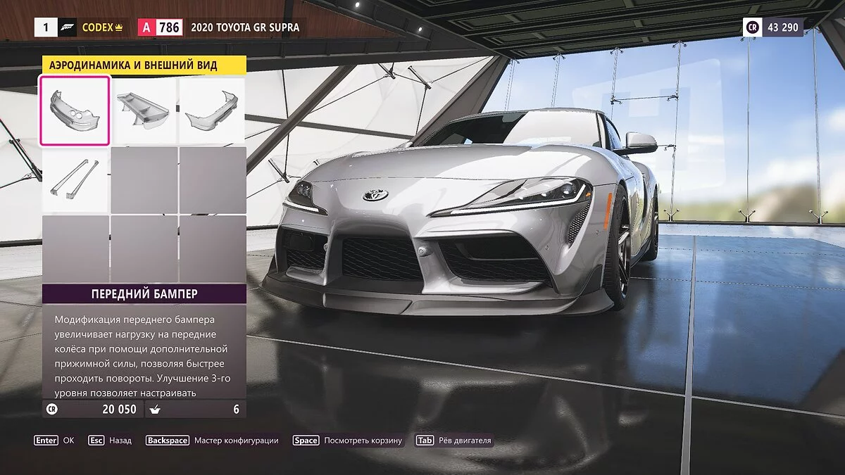 Регулировка аэродинамики позволит вам настроить прижимную силу, обеспечить оптимальный контакт машины с землёй и повысить управляемость. Чтобы разблокировать эту настройку, понадобится приобрести гоночные модификации переднего и заднего бампера.