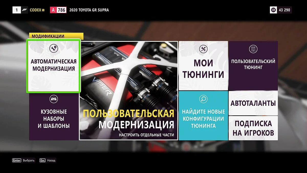 Как открыть меню тюнинга. Автоматическая модернизация автомобиля