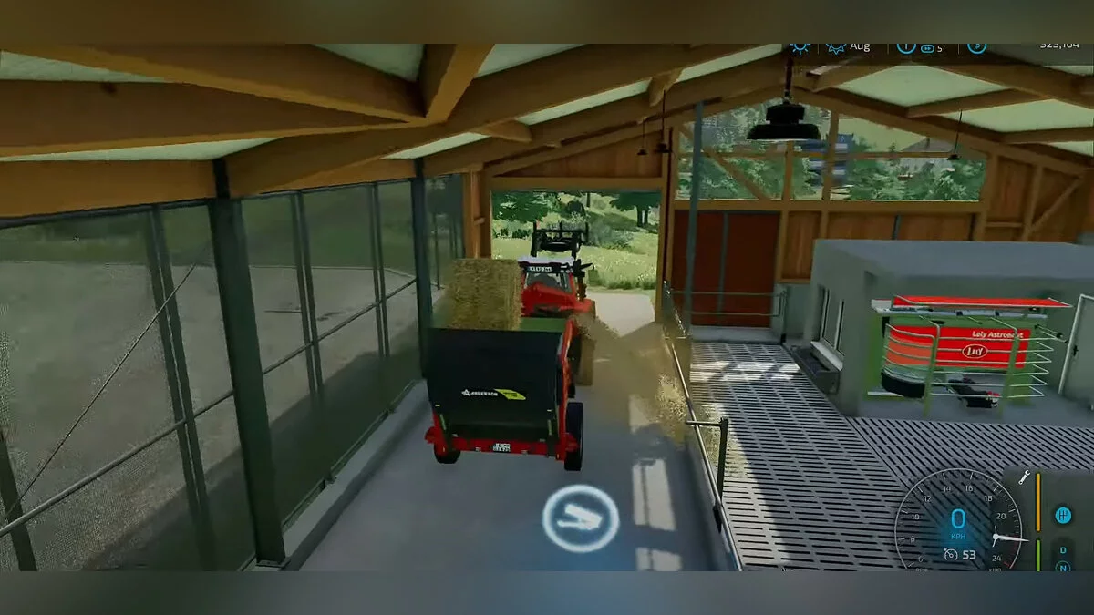 Полученный корм нужно распределить по загонам. Значок разгрузки означает, что здесь можно высыпать корм или солому для сна. Просто подъезжайте на погрузчике или на тракторе с кузовом и высыпайте содержимое — все просто.