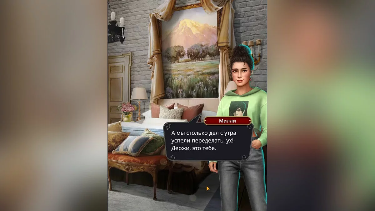 - Хорошо, пойдём к тебе ( 51 алмаз) — откроется сцена с поцелуем, отношения героини с Александрой улучшатся. 51 алмаз) — откроется сцена с поцелуем, отношения героини с Александрой улучшатся.